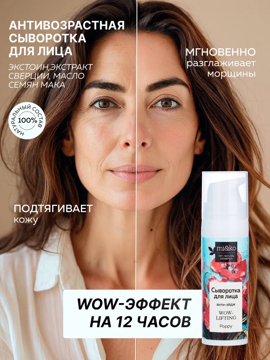 Сыворотка мгновенного действия Мак – эффективная альтернатива болезненным процедурам ботокса. Это супер-коктейль из множества натуральных анти-эйдж компонентов: пептиды, молочная кислота, масло семян мака.