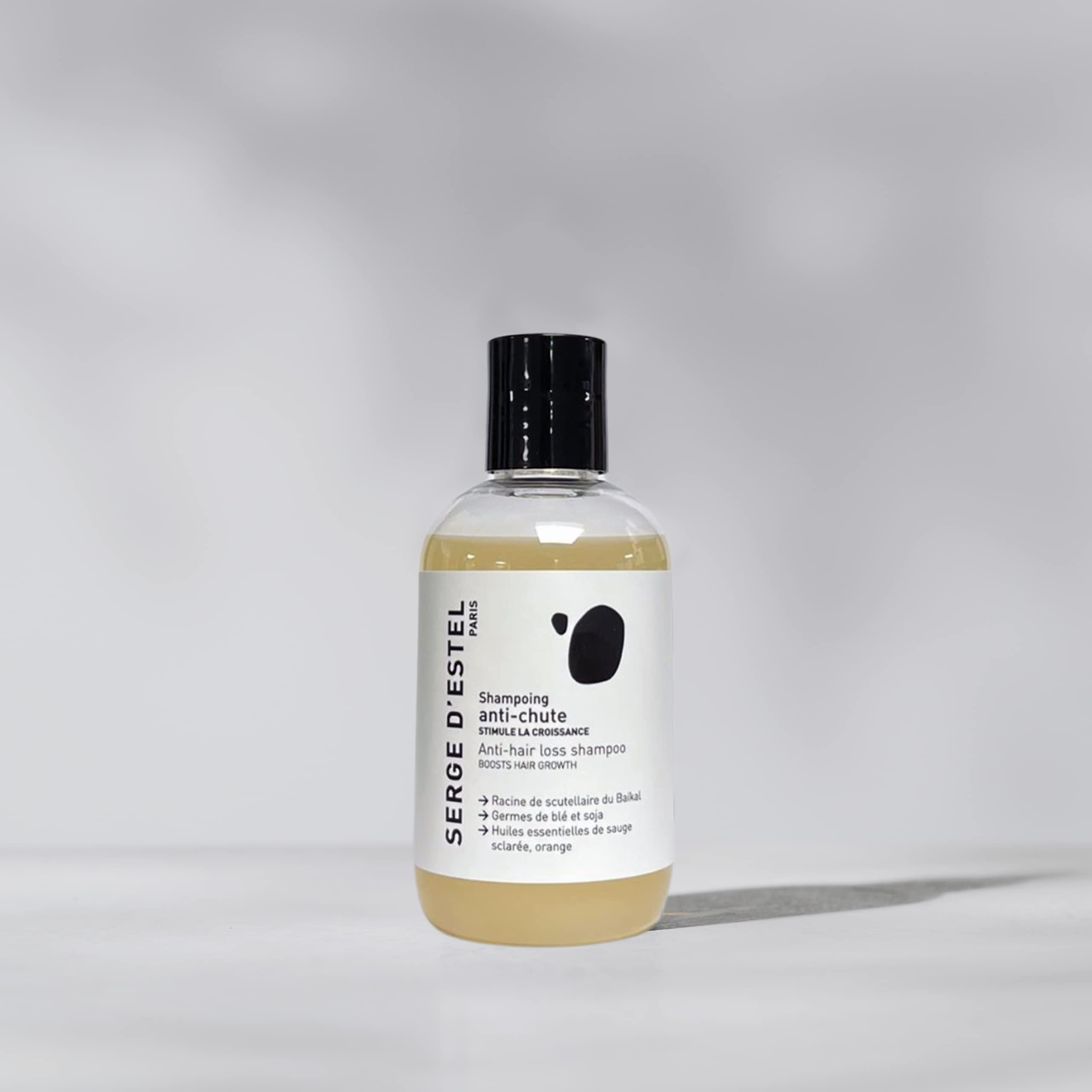Discover our travel size Anti Hair Loss shampoo. It will accompany you to the four corners of the world by gently cleansing your hair, while preserving the health of your scalp, promoting the growth of your hair thanks to its formula rich in active ingredients, strengthening the hair fiber from the root as well as slowing down hair loss. The perfect natural combination to reduce hair loss. INGREDIENTS AQUA, LAURYL GLUCOSIDE, DISODIUM COCOYL GLUTAMATE, DECYL GLUCOSIDE, CITRIC ACID, SODIUM GLUTAMATE, TRITICUM VULGARE GERM EXTRACT, SCUTELLARIA BAICALENSIS ROOT EXTRACT, GLYCINE SOJA GERM EXTRACT, SALVIA SCLAREA OIL, CITRUS AURANTIUM DULCIS PEEL OIL, ARGININE, SODIUM CHLORIDE, SODIUM COCOATE, SODIUM BENZOATE, POTASSIUM SORBATE, LACTIC ACID, PROPANEDIOL, LIMONENE, LINALOOL. DIRECTIONS FOR USE On wet hair, use our shampoo by massaging your scalp circularly to penetrate the active ingredients. Leave for between 3 and 5 minutes then rinse. SAFETY WARNING External use only. Avoid contact with eyes. Keep away from any flame or heat source. WHO IS SERGE D'ESTEL: originally a hairdresser, SERGE decided to create SERGE D'ESTEL to become THE brand of eco-responsible and vegan hair care, created by a hairdresser, manufactured in OUR laboratory in PARIS. CERTIFIED COSMOS NATURAL BY ECO-CERT: Our shampoo is COSMOS NATURAL by ECO-CERT. Packaging made from recycled plastic, 50 of which comes from the oceans. It is 99.5 natural - 100 Vegan and Made in France - 19 20 on INCI BEAUTY. ? A HEALTHY AND EFFECTIVE FORMULA: Formulated with Baikal Skullcap Root, a powerful natural antioxidant that also fights hair loss, Wheat Germ and Soybean Oil, which helps promote hair growth and thicken hair, and Clary Sage essential oil to promote hair growth. IDEAL FOR SEASONAL HAIR LOSS: Whether seasonal or recurring, hair loss affects us all, on a different scale. Our shampoo is for anyone who wants to strengthen their hair at the root, treating or preventing seasonal hair loss. STRENGTHENS YOUR HAIR AT THE ROOT AND STIMULATES GROWTH: Our anti-hair loss shampoo is sulfate-free. It will strengthen hair at the root and stimulate hair growth by activating blood circulation. Découvrez notre shampoing Anti Chute de cheveux format Voyage. Il vous accompagnera aux 4 coins du monde en nettoyant en douceur vos cheveux, tout en préservant la santé de votre cuir chevelu, en favorisant la croissance de vos cheveux grâce à sa formule riche en actifs, en renforçant la fibre capillaire dès la racine ainsi qu'en ralentissant la chute de cheveux. L'alliance naturelle parfaite pour diminuer la chute des cheveux. INGRÉDIENTS AQUA, LAURYL GLUCOSIDE, DISODIUM COCOYL GLUTAMATE, DECYL GLUCOSIDE, CITRIC ACID, SODIUM GLUTAMATE, TRITICUM VULGARE GERM EXTRACT, SCUTELLARIA BAICALENSIS ROOT EXTRACT, GLYCINE SOJA GERM EXTRACT, SALVIA SCLAREA OIL, CITRUS AURANTIUM DULCIS PEEL OIL, ARGININE, SODIUM CHLORIDE, SODIUM COCOATE, SODIUM BENZOATE, POTASSIUM SORBATE, LACTIC ACID, PROPANEDIOL, LIMONENE, LINALOOL. MODE D'EMPLOI Sur cheveux mouillé, utilisez notre shampoing en massant circulairement votre cuir chevelu afin de faire pénétrer les actifs. Laissez reposer entre 3 et 5 minutes puis rincez. AVERTISSEMENT DE SÛRETÉ Usage externe uniquement. Éviter tout contact avec les yeux. Tenir éloigné de toute flamme ou source de chaleur. QUI EST SERGE D'ESTEL : à l'origine coiffeur, SERGE a décidé de créer SERGE D'ESTEL pour devenir LA marque de soins capillaires éco-responsables et végans, créés par un coiffeur, fabriqués dans NOTRE laboratoire à PARIS. CERTIFIÉ COSMOS NATURAL PAR ECO-CERT : Notre shampoing est COSMOS NATURAL par ECO-CERT. Packaging fabriqué à partir de plastique recyclé dont 50 vient des océans. Il est à 99,5 naturel - 100 Vegan et Made in France - 19 20 sur INCI BEAUTY. ? UNE FORMULE SAINE ET EFFICACE : Formulé avec de la Racine de scutellaire du Baïkal un puissant anti-oxydant naturel luttant également contre la chute des cheveux, de l'huile de Germe de Blé et de Soja, contribuant à favoriser la croissance des cheveux et à les densifier, de l'huile essentielle de Sauge Sclarée pour favoriser la croissance capillaire. IDÉAL POUR LES CHUTES SAISONNIÈRES : Qu'elle soit saisonnière ou récurrente, la chute des cheveux nous concerne tous, à une échelle différente. Notre shampoing est pour toutes les personnes voulant fortifier ses cheveux à la racine, traitant ou prévenant des chutes de cheveux saisonnières. FORTIFIE VOS CHEVEUX À LA RACINE ET STIMULE LA CROISSANCE : Notre shampoing anti chute est sans sulfate. Il va permettre de renforcer les cheveux à la racine, de stimuler la pousse des cheveux en activant la circulation sanguine.
