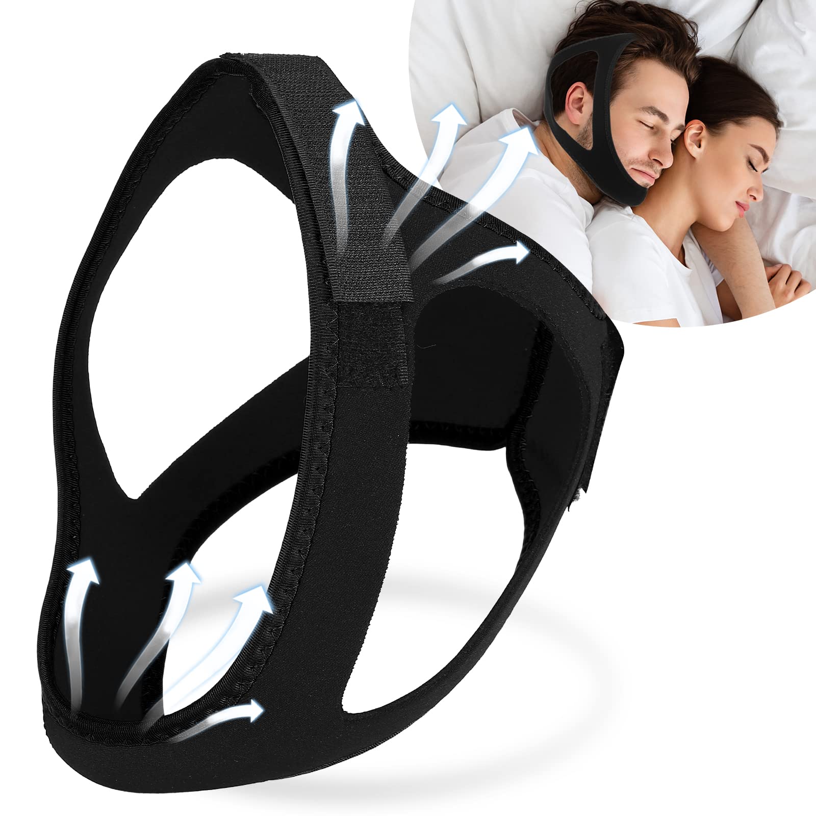 Anti Snoring Chin Strap for Sleep Apnea Adjustable and Breathable Chin Strap for Cpap Users Effective Snoring Solution to Stop Snoring for Men and Women (Black)