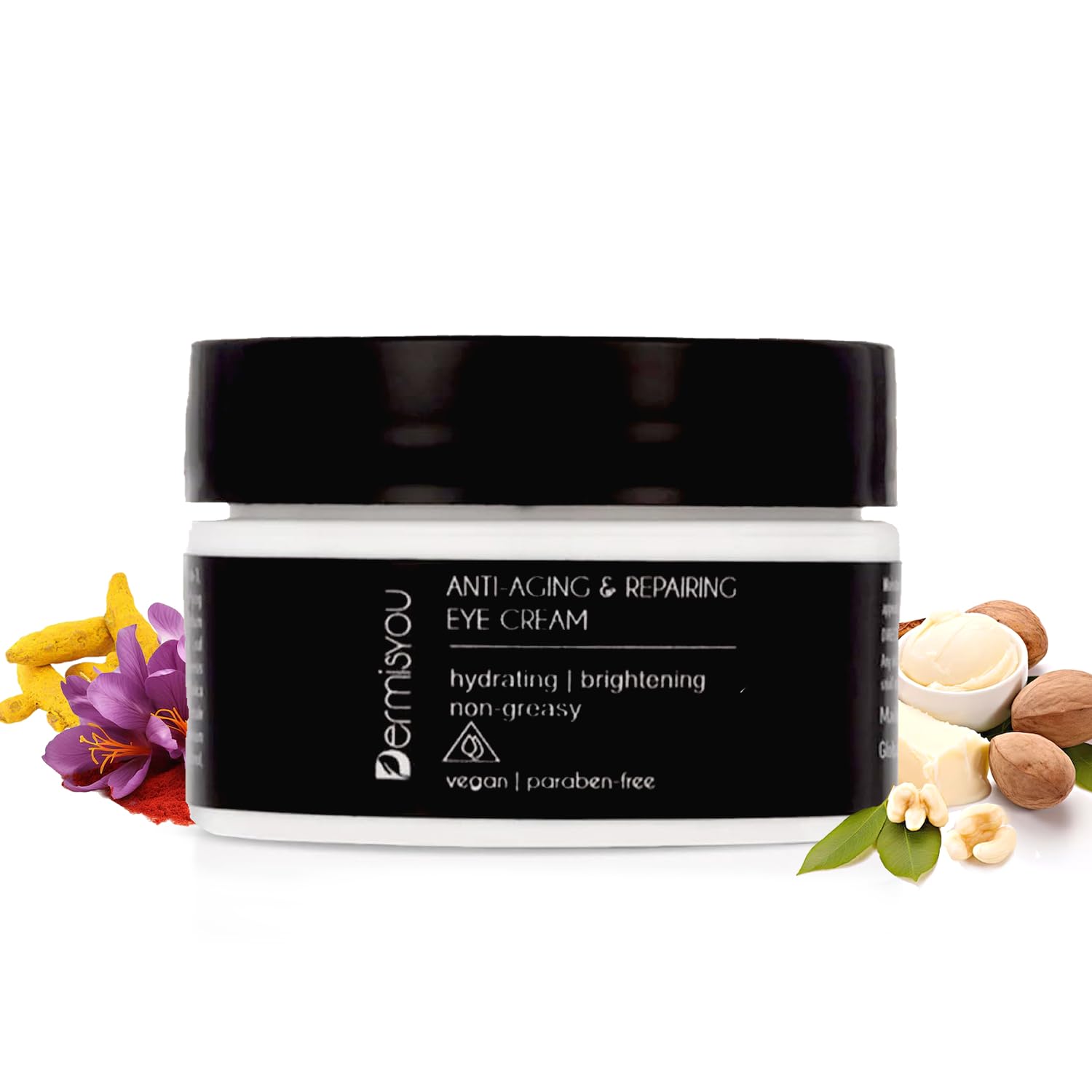 Spa Treatment in a Jar: Enjoy a luxurious, soothing experience every time you apply. A refreshing rosy scent and silky texture make it a must-have in your daily skincare routine. Pure Gentle Skincare: Vegan, cruelty-free, and free from alcohol and parabens, this formula is safe for all skin types. Made with nature's best to give your eyes the care they deserve. Deep Hydration, Zero Grease: Lightweight yet ultra-moisturizing, this fast-absorbing cream keeps your under-eyes soft and plump. No sticky residue—just smooth, nourished skin. Banish Dark Circles: Say goodbye to tired-looking eyes with this brightening formula. It reduces pigmentation and delivers a natural radiance for a fresh, well-rested look. Wrinkle Defense, Made Easy: This eye cream fights and prevents fine lines with a powerhouse blend of saffron, turmeric, and rosewater. Keep your under-eye skin firm, youthful, and glowing effortlessly.