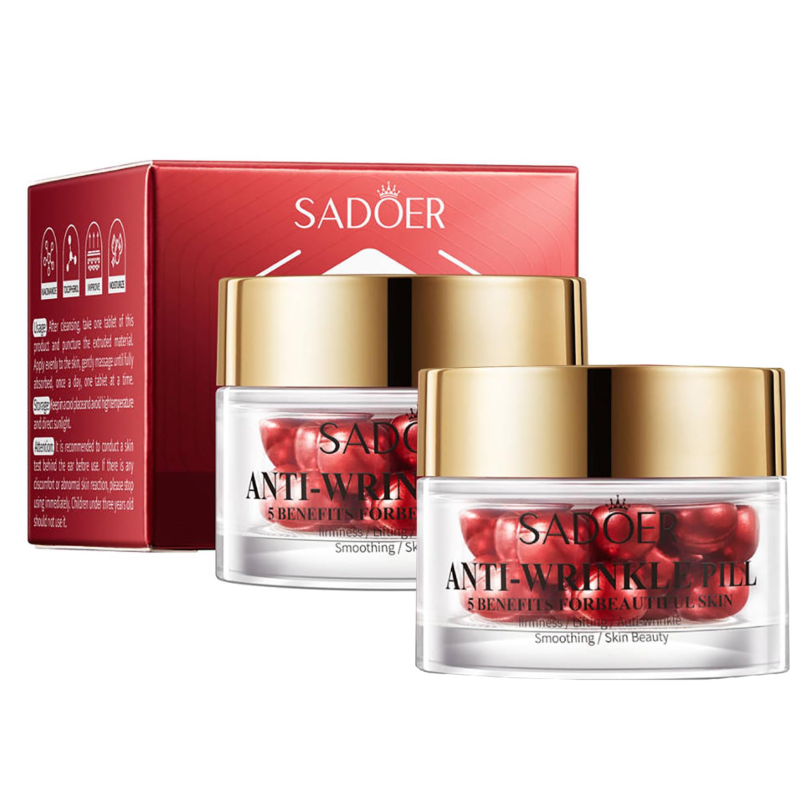 pecifications: NAME: Anti-wrinkle essential oilanti-wrinkle pill SHELF LIFE: 3 years NORMS:0.5ml 0.01fl.oz x30pcs Use skin type: All skin types can be used Package Includes: 2/3 * Anti-Wrinkle Pill Notes: 1. Due to display and light reasons, please refer to the actual product received. 2. Please allow 1-2cm error due to manual measurement.
