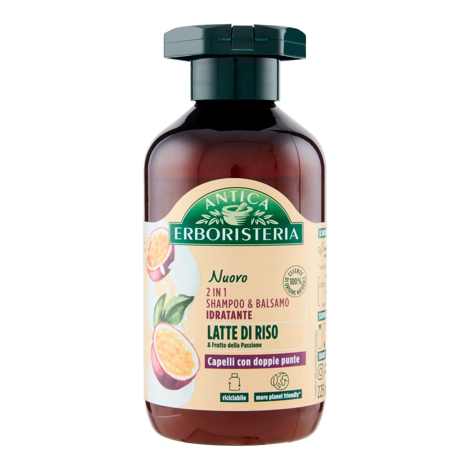 ANTICA ERBORISTERA: Has always studied the properties of the natural ingredients it carefully selects. Vegan formula: The lightweight formula, free of silicone and artificial colors, gently cleanses your hair without weighing it down, leaving it visibly healthy. Natural ingredients: Rice milk is traditionally considered a vitamin-rich ingredient passion fruit is known for its soothing properties. Benefits: Moisturizes and helps repair long hair with split ends the shampoo, enriched with a moisturizing conditioner, makes hair more beautiful and stronger. Product: 2-in-1 Shampoo and Moisturizing Conditioner with Rice Milk Passion Fruit for Hair with Split Ends.