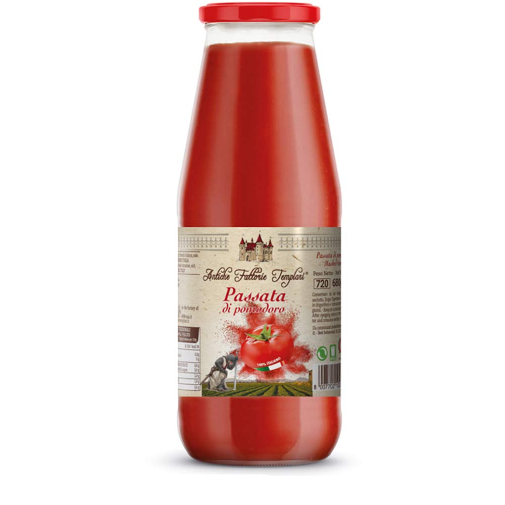 Antiche Fattorie Templari Tomato Past | Ancient Templar Farms | 12 x 680g Bottles | Gluten Free | Organic Agriculture | Certificate of Food Excellence | Cilento and Piana del Sele Tomatoes | Gift Idea