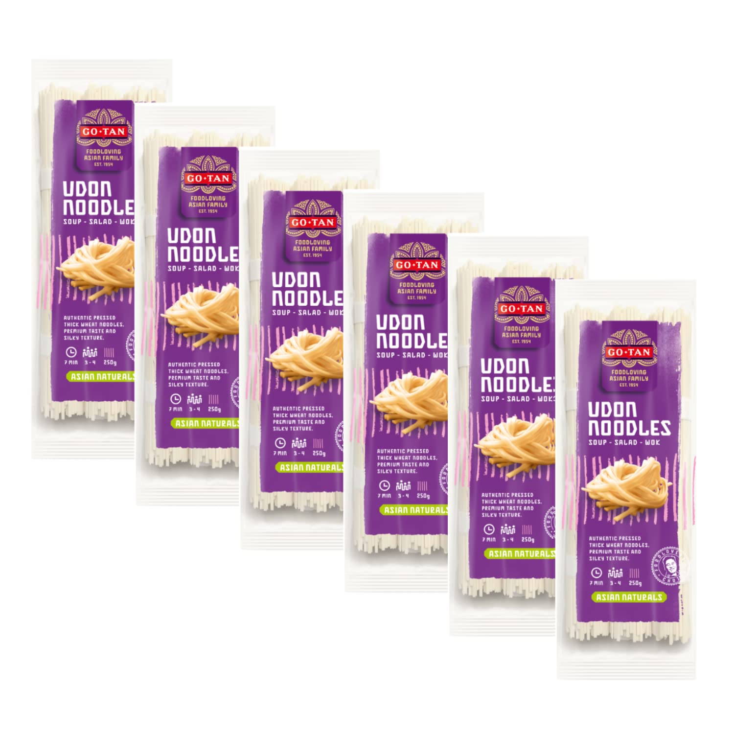 GO-TAN Go-Tan is a family-run Asian food business. A true family enterprise, lovingly and devotedly managed by founder Frans Go and Han's sons. Good food plays a very important role in the family. It's the Asian way of spending quality time with loved ones. That's why the company never compromises on ingredients or preparation. Constantly exploring new flavors and always striving for the best possible results, the company recognizes that there's always room for improvement, because food is about love. Go-Tan "UDON Noodles": Thin Japanese noodles made from soft wheat flour, to be enjoyed hot or cold (6 x 250 grams). [NOODLES] - Also called Chinese spaghetti or Japanese spaghetti, they have very ancient origins and are a classic stir-fry with vegetables over high heat in a wok, with the addition of soy sauce, spices, and flavorings. [A LITTLE HISTORY] - Noodles are vermicelli-like pasta made with various flours and originated in China over 4,000 years ago. Over time, they spread to Thailand, Japan, the Philippines, and Malaysia, becoming a staple food in their cultures. [SUSTAINABLE] - Since its founding in 1954, Go-Tan has strived to make its processes and products incregly sustainable, minimizing the amount of packaging materials and the use of plastic. [SOFT WHEAT] - The noodles are made with soft wheat flour and cut directly from the dough sheet with minimal moisture. They can be refrigerated for short-term storage or dried and stored for future use. [IN THE KITCHEN] - Noodles are very versatile and lend themselves to various preparations: they can be boiled in salted water, fried, stir-fried, and more. INGREDIENTS 85 wheat flour, water, salt. May contain traces of celery. COOKING INSTRUCTIONS Boil in salted water, fry, stir-fry in a wok, or season with meat, fish, or vegetables. They can be used in soups or served hot or cold. See moreAller-Tan Nouilles Udon japonaises Pâtes japonaises typiques Farine de Blé Tendre - 6 x 250 GrDESCRIPTION DU PRODUIT DESCRIPTION DU PRODUIT GO-TAN Go-Tan est une famille asiatique gourmande. Une véritable entreprise familiale dirigée avec amour et dévouement par les fils du fondateur Frans Go et Han. La bonne nourriture joue un rôle très important au sein de la famille. C'est la façon asiatique de passer beaucoup de bons moments avec les gens qui vous entourent. C'est pourquoi l'entreprise ne fait jamais de compromis sur les ingrédients et la préparation. Continuant à toujours découvrir de nouvelles saveurs et s'efforçant toujours d'obtenir le meilleur possible, l'entreprise est consciente qu'il y a toujours place à l'amélioration, car la nourriture, c'est l'amour. Go-Tan "UDON Noodles" : nouilles japonaises à base de farine de blé tendre, fines, à consommer chaudes ou froides (6 x 250 grammes). [NOUILLES] - Aussi appelées spaghettis chinois ou spaghettis japonais, elles ont des origines très lointaines et sont un classique sauté avec des légumes à feu vif au wok, avec l'ajout de sauce soja, d'épices et d'arômes. [UN PEU D'HISTOIRE] - Les nouilles sont des pâtes vermicelles préparées avec différentes farines et nées en Chine il y a plus de 4000 ans. Au fil du temps, ils se sont répandus en Thaïlande, au Japon, aux Philippines et en Malaisie, devenant l'aliment de base de leurs cultures. [DURABLE] - Go-Tan, depuis la date de sa naissance en 1954, a essayé de rendre ses processus et produits de plus en plus durables. Minimiser la quantité de matériaux d'emballage et l'utilisation de plastique. [BLÉ TENDRE] - Les nouilles sont faites avec de la farine de blé tendre et coupées directement de la feuille de pâte avec peu d'humidité. Ils peuvent être réfrigérés pour un stockage à court terme ou séchés et stockés pour une utilisation future. [EN CUISINE] - Les nouilles sont très polyvalentes et se prêtent à diverses interprétations : elles peuvent être bouillies dans de l'eau salée, frites, saisies et sa. INGRÉDIENTS 85 fleur de blé, eau, sel. Il peut contenir des traces de céleri. MODE D'EMPLOI Cuire dans de l'eau salée, faire frire, frire et faire frire dans un wok, assaisonner de viande, de poisson ou de légumes. Ils peuvent être utilisés pour les soupes ou servis chauds ou froids. Voir plus