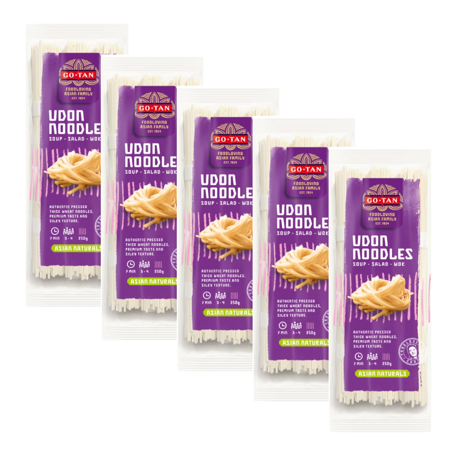 GO-TAN Go-Tan is a family-run Asian food business. A true family enterprise, lovingly and devotedly managed by the founder's sons, Frans Go and Han. Good food plays a very important role within the family. It's the Asian way of spending quality time with loved ones. That's why the company never compromises on ingredients or preparation. Constantly exploring new flavors and always striving for the best possible results, the company recognizes that there's always room for improvement, because food is about love. Go-Tan "UDON Noodles": Thin Japanese noodles made from soft wheat flour, to be enjoyed hot or cold (5 x 250 grams). [NOODLES] - Also called Chinese spaghetti or Japanese spaghetti, they have very ancient origins and are a classic stir-fry with vegetables over high heat in a wok, with the addition of soy sauce, spices, and flavorings. [A LITTLE HISTORY] - Noodles are vermicelli-like pasta made with various flours and originated in China over 4,000 years ago. Over time, they spread to Thailand, Japan, the Philippines, and Malaysia, becoming a staple food in their cultures. [SUSTAINABLE] - Since its founding in 1954, Go-Tan has strived to make its processes and products incregly sustainable, minimizing the amount of packaging materials and the use of plastic. [SOFT WHEAT] - The noodles are made with soft wheat flour and cut directly from the dough sheet with minimal moisture. They can be refrigerated for short-term storage or dried and stored for future use. [IN THE KITCHEN] - Noodles are very versatile and lend themselves to various preparations: they can be boiled in salted water, fried, stir-fried, and more. INGREDIENTS 85 wheat flour, water, salt. May contain traces of celery. COOKING INSTRUCTIONS Cook in boiling salted water for 2-3 minutes, fry, or stir-fry in a wok with vegetables, spices, and sauces. They can be used in soups or hot or cold dishes. See moreAller-Tan Nouilles Udon japonaises Pâtes japonaises Farine de Blé Tendre - 5 x 250 GrDESCRIPTION DU PRODUIT DESCRIPTION DU PRODUIT GO-TAN Go-Tan est une famille asiatique gourmande. Une véritable entreprise familiale dirigée avec amour et dévouement par les fils du fondateur Frans Go et Han. La bonne nourriture joue un rôle très important au sein de la famille. C'est la façon asiatique de passer beaucoup de bons moments avec les gens qui vous entourent. C'est pourquoi l'entreprise ne fait jamais de compromis sur les ingrédients et la préparation. Continuant à toujours découvrir de nouvelles saveurs et s'efforçant toujours d'obtenir le meilleur possible, l'entreprise est consciente qu'il y a toujours place à l'amélioration, car la nourriture, c'est l'amour. Go-Tan "UDON Noodles" : nouilles japonaises à base de farine de blé tendre, fines, à consommer chaudes ou froides (5 x 250 grammes). [NOUILLES] - Aussi appelées spaghettis chinois ou spaghettis japonais, elles ont des origines très lointaines et sont un classique sauté avec des légumes à feu vif au wok, avec l'ajout de sauce soja, d'épices et d'arômes. [UN PEU D'HISTOIRE] - Les nouilles sont des pâtes vermicelles préparées avec différentes farines et nées en Chine il y a plus de 4000 ans. Au fil du temps, ils se sont répandus en Thaïlande, au Japon, aux Philippines et en Malaisie, devenant l'aliment de base de leurs cultures. [DURABLE] - Go-Tan, depuis la date de sa naissance en 1954, a essayé de rendre ses processus et produits de plus en plus durables. Minimiser la quantité de matériaux d'emballage et l'utilisation de plastique. [BLÉ TENDRE] - Les nouilles sont faites avec de la farine de blé tendre et coupées directement de la feuille de pâte avec peu d'humidité. Ils peuvent être réfrigérés pour un stockage à court terme ou séchés et stockés pour une utilisation future. [EN CUISINE] - Les nouilles sont très polyvalentes et se prêtent à diverses interprétations : elles peuvent être bouillies dans de l'eau salée, frites, saisies et sa. INGRÉDIENTS 85 fleur de blé, eau, sel. Il peut contenir des traces de céleri. MODE D'EMPLOI Cuire dans de l'eau salée bouillante pendant 2 à 3 minutes, frire, sauter dans du wok avec des légumes, des épices et des sauces. Ils peuvent être utilisés pour les soupes ou les saveurs chaudes ou froides. Voir plus