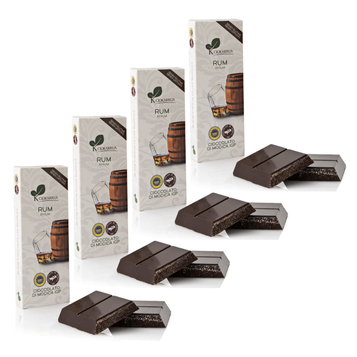 CIOKARRUA The "Traditional Ciokarrua" is born, a classic 100g bar made of cocoa paste and sugar, combined with the aromas and flavors of Sicily, creating a true harmony of taste, delighting the palate with intense notes of bitterness and crunchy sugar crystals. Gluten-free. It contains no milk or milk derivatives. "Rum": Modica IGP chocolate with rum - 4 x 100 grams. Made in Italy. GLUTEN AND LACTOSE FREE: The processed raw Modica chocolate bar from the Ciokarrua brand is guaranteed gluten-free and lactose-free. DIET ALLY: Scientific studies claim that eating dark chocolate in the morning induces lipid oxidation, helping to lose inches. GOOD MOOD: Chocolate is the food of good mood. Its captivating aroma instantly transports us to a more serene world, stimulating endorphins and the happiness hormone! RUM: The powerful taste of this brandy finds a perfect match with chocolate. On the palate, it enhances the honey notes and leaves a smooth and full-bodied finish. MODICA PGI: The sensation of tasting the famous chocolate with its crunchy sugar crystals is surprising. The dark chocolate is pure, without lecithins or added fats. INGREDIENTS Minimum 50 cocoa. Cocoa mass, cane sugar, 0.2 rum flavoring. May contain traces of nuts (pistachios, almonds, hazelnuts, walnuts).Ciokarrua Chocolat Modica Arôme Rhum IGP Sans Gluten Artisanat brut de Modica Comprimé sans lactose Barres de Chocolat - (4 x 100 Gr)DESCRIPTION DU PRODUIT DESCRIPTION DU PRODUIT CIOKARRUA Le "Ciokarrua traditionnel" est né, un lingot classique de 100 GR, composé de pâte de cacao et de sucre, combiné aux odeurs et aux saveurs de la Sicile, donnant vie à une véritable harmonie de goût, ravissant le palais avec des notes intenses d'amertume et de croquant cristaux de sucre. Sans gluten. Il ne contient pas de lait et de dérivés du lait. "Rhum": Chocolat Modica IGP au rhum - 4 x 100 grammes. Fabriqué en Italie. SANS GLUTEN ET SANS LACTOSE : la barre de chocolat Modica brut transformé de la marque Ciokarrua est garantie alimentaire sans gluten et sans lactose. ALLIÉ DU RÉGIME : Des études scientifiques affirment que manger du chocolat noir le matin induit une oxydation des lipides, aidant à perdre trop de centimètres. BONNE HUMEUR : c'est lui, le chocolat, l'aliment de la bonne humeur. Son arôme envoûtant nous transporte immédiatement dans un monde plus serein, stimulant les endorphines et l'hormone du bonheur ! RHUM : le goût puissant de cette eau-de-vie trouve un accord parfait avec le chocolat. En bouche, il rehausse les notes de miel et laisse une persistance douce et corsée. MODICA IGP : la sensation de goûter le fameux chocolat aux cristaux de sucre croquants est surprenante. Le chocolat noir est pur sans lécithines ni matières grasses. INGRÉDIENTS Cacao minimum 50 . Pâte de cacao, sucre de canne, 0,2 d'arôme de rhum. Il peut contenir des traces de fruits à coque (pistaches, amandes, noisettes, noix).