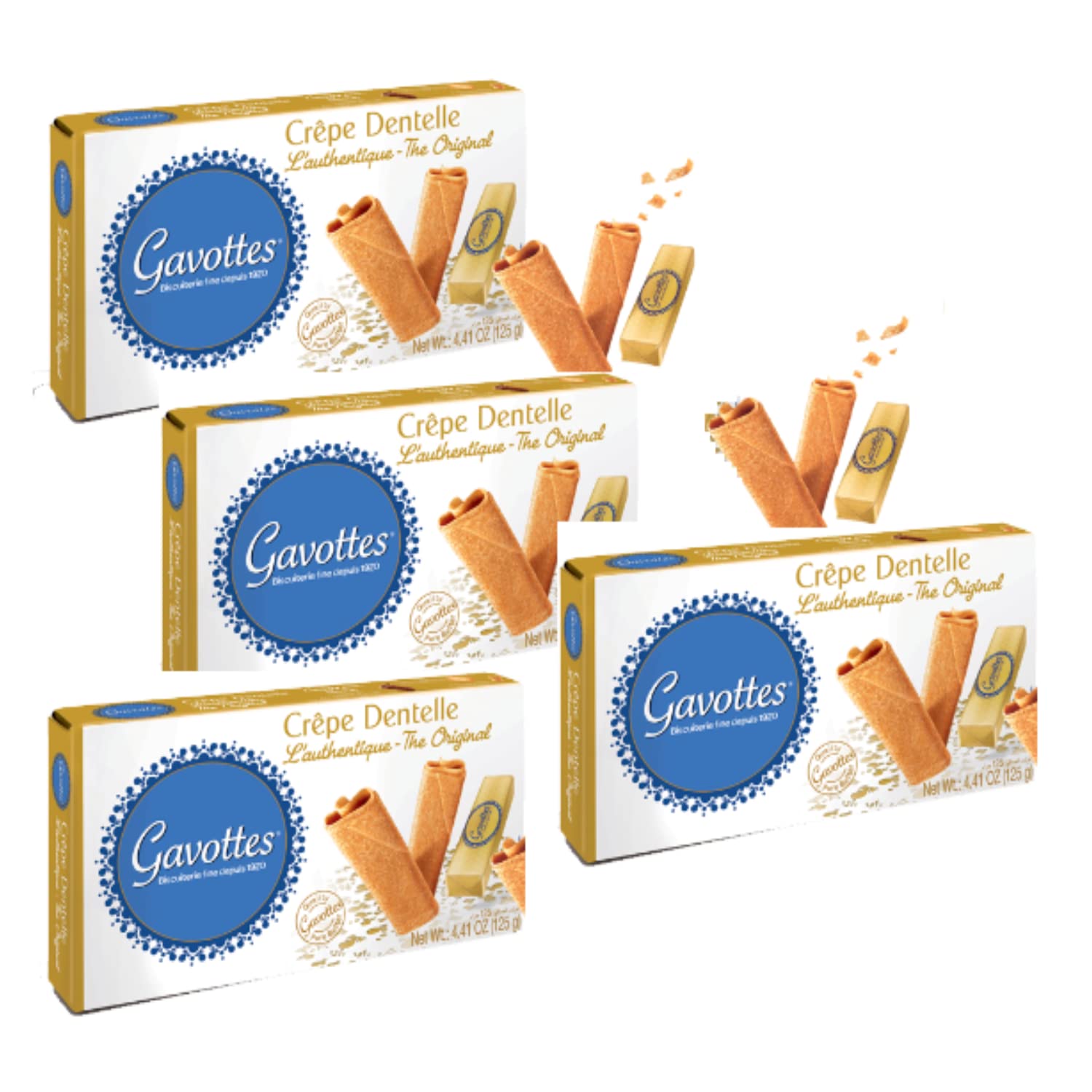 FBM Gavottes Dentelle Véritable Production locale Originale Crêpes bretonnes originales Biscuits roulés croustillants - 4 x 125 grammes Crêpes prêtes à l'emploi