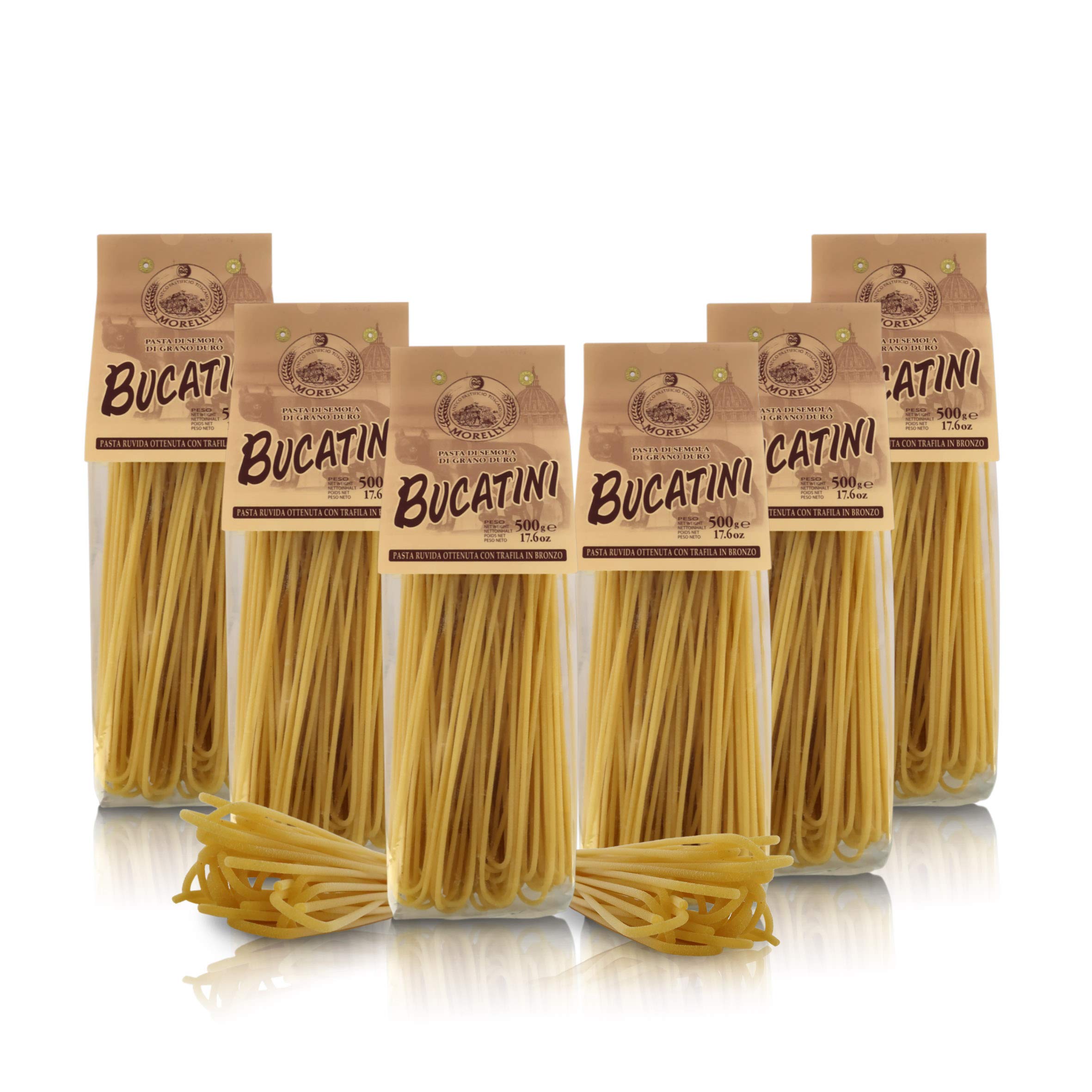 Bucatini regional pasta 6 x 500 grams Ingredients: durum wheatgrass, water. Allergens: contains gluten-containing grains. Made in the factory that also uses egg, fish and plasticizer products. Storage conditions: dry and away from grains. The Morelli Pasta is prepared by hand in a family-run pastificie in the province of Pisa, founded in 1860. For 5 generations, the pasta has been prepared with high-quality durum wheat bones and classic techniques that include bronze drying and low-temperature drying with full attention to tradition. The flower flour of the Morelli production is the wheat germ pasta, which uses a natural ingredient, which is normally removed, which, through the artisanal processing, on the other hand, allows a new introduction into the dough and gives the pasta a very special taste and aroma. The Morelli noodle series includes: wheat germ pasta, regional types, egg dough and wheat germ, Toscana whole wheat pasta, senator caps, hull pasta, gluten-free pasta, anti-grain and kamut flavor, multi-colored and gift items.? Morelli Pastai Masters use wheat germ and the finest bones. The old Pastificio Morelli was founded in 1860 and is still family owned after 5 generations ? . Contents: 6 pieces net weight: 3 kg cooking time: 11 minutes. Prepared by hand, it belongs to the "La Pasta Tipica" line. Dough from Tuscany in the "Bucatini" format.Antico Pastificio Morelli 1860 Srl Bucatini, typische regionale pasta, 6 verpakkingen à 500 g Bucatini regionale pasta 6 x 500 gram Ingrediënten: hard tarwegras, water. Allergenen: bevat glutenhoudende granen. Gemaakt in de fabriek, die ook eier-, vis- en weekmaker producten gebruikt. Opslagomstandigheden: droog en uit de buurt van granen. De Morelli Pasta wordt met de hand bereid in een gezinsbeheerde pastificie in de provincie Pisa, die in 1860 is opgericht. Al 5 generaties wordt de pasta bereid met hoogwaardige graten van harde tarwe en klassieke technieken die bronzen drogen en drogen bij lage temperatuur met volledige aandacht voor de traditie zijn. De bloemenbloem van de productie Morelli is de tarwekiempasta, die een natuurlijk ingrediënt gebruikt, dat normaal gesproken wordt verwijderd, dat door de ambachtelijke verwerking daarentegen een nieuwe introductie in het deeg mogelijk maakt en de pasta een heel bijzondere smaak en aroma geeft. De Morelli-noedelserie omvat: tarwekiempasta, regionale typen, eierdeeg en tarwekiemen, Toscana volkorenpasta, senatorpetten, hullpasta, glutenvrije pasta, antikorrels en kamutsmaak, meerkleurig en geschenkartikelen.? Morelli Pastai Masters gebruiken tarwekiemen en de fijnste graatjes. De oude Pastificio Morelli werd in 1860 opgericht en is na 5 generaties nog in familieeigendom ? . Inhoud: 6 stuks nettogewicht: 3 kg kooktijd: 11 minuten. Met de hand bereid, behoort tot de lijn "La Pasta Tipica". Deeg uit Toscane in het formaat "Bucatini".