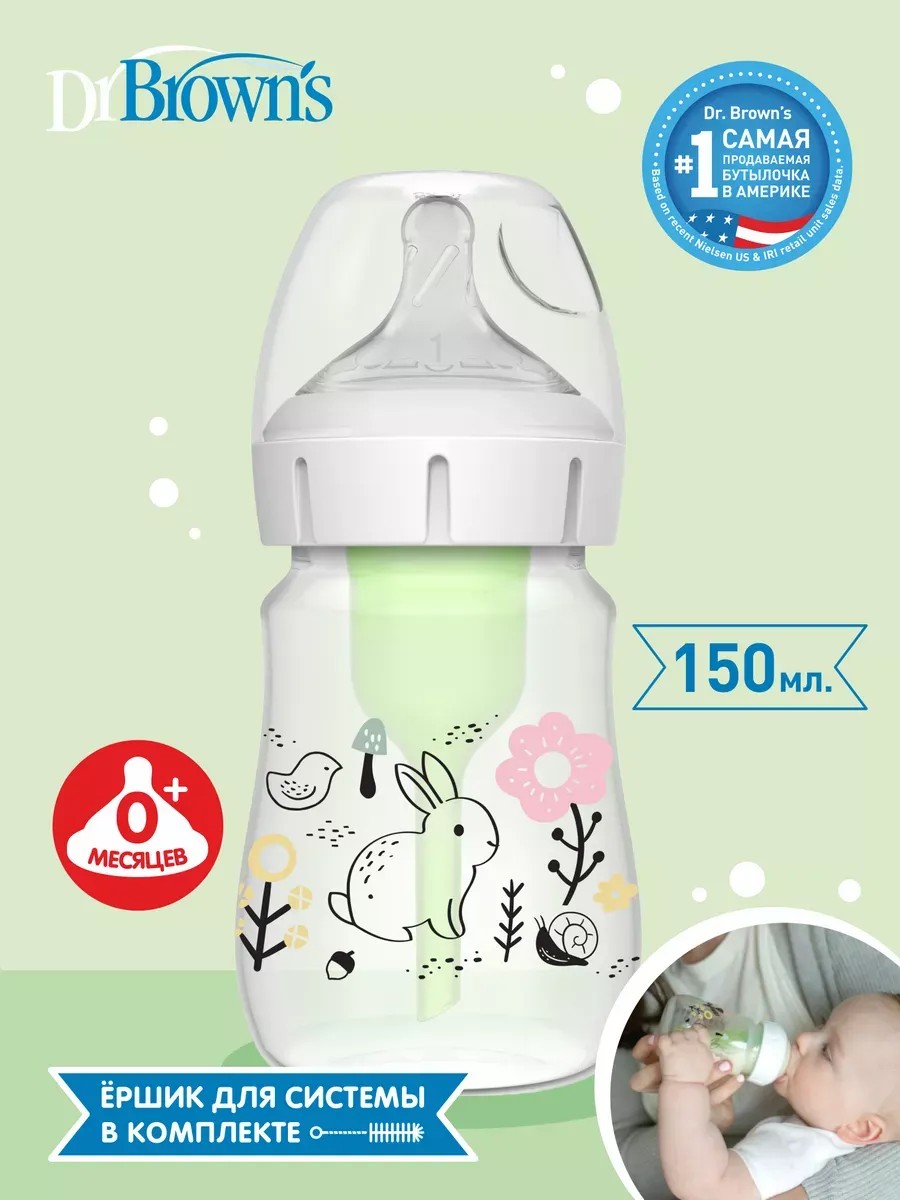 Детская бутылочка для кормления новорождённых с запатентованной вентиляционной системой (внутренней трубочкой), поэтому все бутылочки dr. brown’s являются антиколиковыми. В жидкости при кормлении не образуются пузырьки воздуха, тем самым минимизируя риск возникновения срыгиваний и колик. За счёт работы вентиляционной системы жидкость вытекает покапельно, имитируя процесс кормления грудью, так как малыш прилагает те же усилия и задействует те же лицевые мышцы, что и при грудном вскармливании. Похожая на грудь соска обеспечивает правильный захват, что в совокупности с покапельным течением молока позволяет совмещать кормление из бутылочки с грудным вскармливанием без риска отказа от груди. Так как воздух, поступающий в бутылочку при кормлении, не контактирует с жидкостью (грудное молоко/ смесь/ вода), в ней сохраняются все питательные вещества и витамины. При использовании антиколиковых бутылочек вы не столкнётесь с таким досадным явлением, как слипание соски, так как в них отсутствует вакуум. Все бутылочки Доктор Браун можно использовать как 'с' так и 'без' вентиляционной системы. В поездках, во избежании протекания молока, пользуйтесь транспортировочным диском. Части бутылочки dr browns и соски к ним разрешено мыть в верхней корзине посудомоечной машины и стерилизовать в стерилизаторе. Вся продукция нашего бренда не содержит вредных веществ и примесей: ПВХ, свинца, фталатов и бисфенола А. Широкое горлышко позволяет легко ухаживать за внутренней частью, для чистки вентиляционной системы к каждой бутылочке идёт в комплекте маленький ёршик (высота ёршика 9 см, диаметр 0,7 см). Кормление из противоколиковых бутылочек способствует пищеварению для спокойного сна. Они могут использоваться для воды, смеси, грудного молока и с соответствующими сосками для густых жидкостей и жидких каш. Ширина горлышка – 53 мм. Яркая, нестираемая мерная шкала имеет шаг 10мл. Для просмотра ассортимента введите название Dr. Brown’s в поисковую строку.
