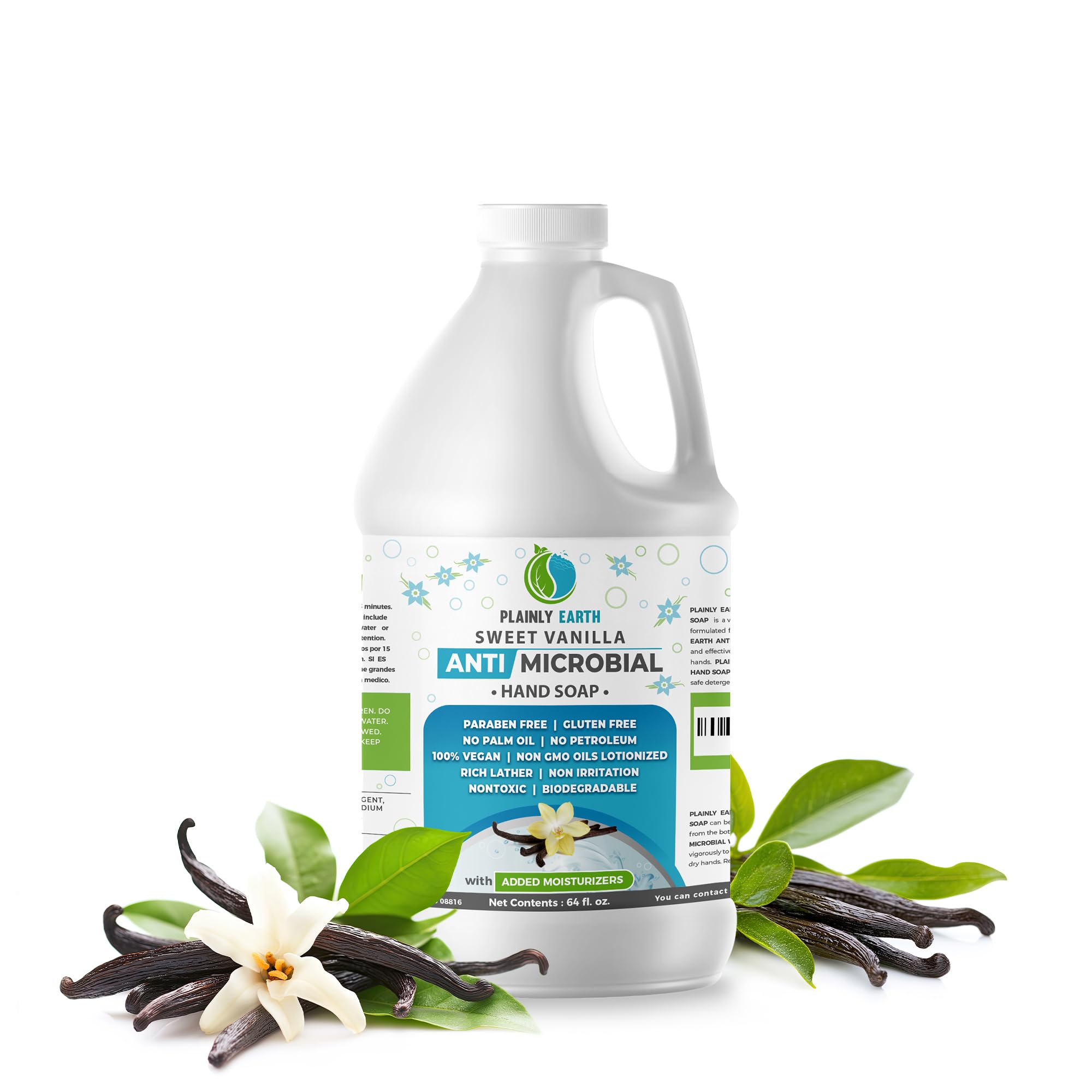 Made In US – This Paraben free hand soap bulk is also Sulfate free, Gluten free, and Cruelty free. A 100 Vegan soap made with non-GMO oils, no Palm Oil, no Petroleum, and a low pH level. Multiple Refills – With one gallon of this hand soap, you'll be able to refill many times before needing to purchase another gallon of soap for your home or office setting. Fill up all your dispensers at once or just keep refilling your bottle throughout the day either way, each large jug will last you a while!. Clean, Sweet Scent – Keep your family protected with this vanilla scented liquid soap refill! This antimicrobial and antibacterial hand soap refill will help keep your hands smelling fresh and moisturized. Skin Friendly – We use only clean ingredients in our handsoap refill to keep your hands smooth and soft even after repeated use. Plainly Earth's gentle formula for our antibacterial soap refill is perfect for dry, sensitive skin.