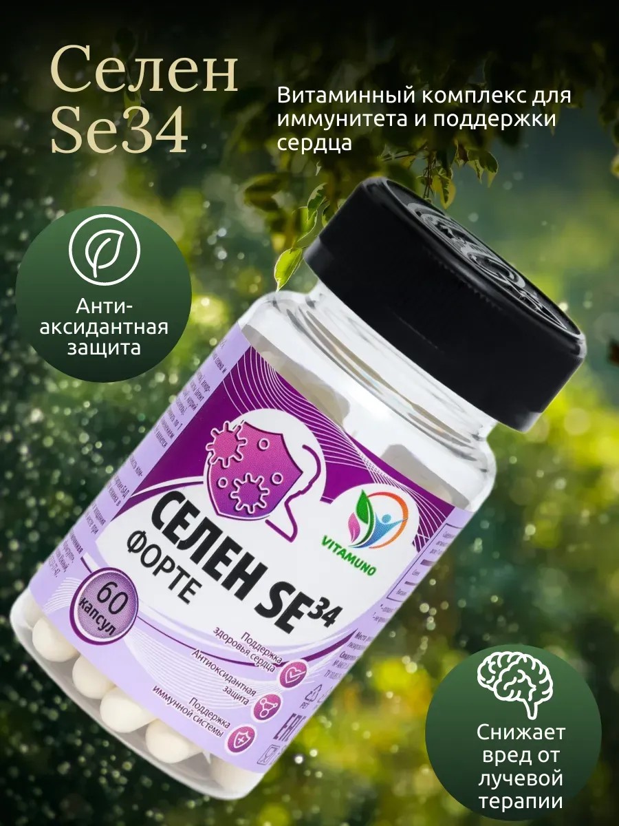 | Полное наименование товара | Селен-форте Se34, иммунитет, антиоксидантная защита, 60 капсул по 0,3 г |