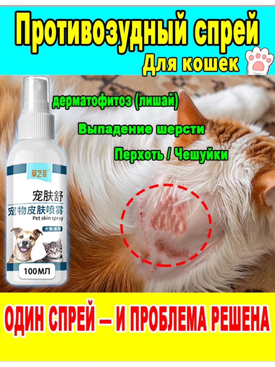 Противозудный спрей для кожи кошек ,100 мл