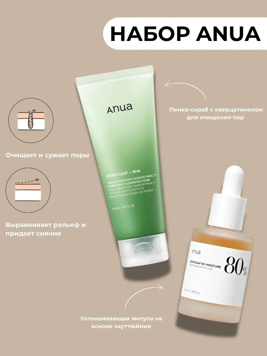| Комплектация | Набор Anua пенка-скраб и сыворотка с хауттюйнией |