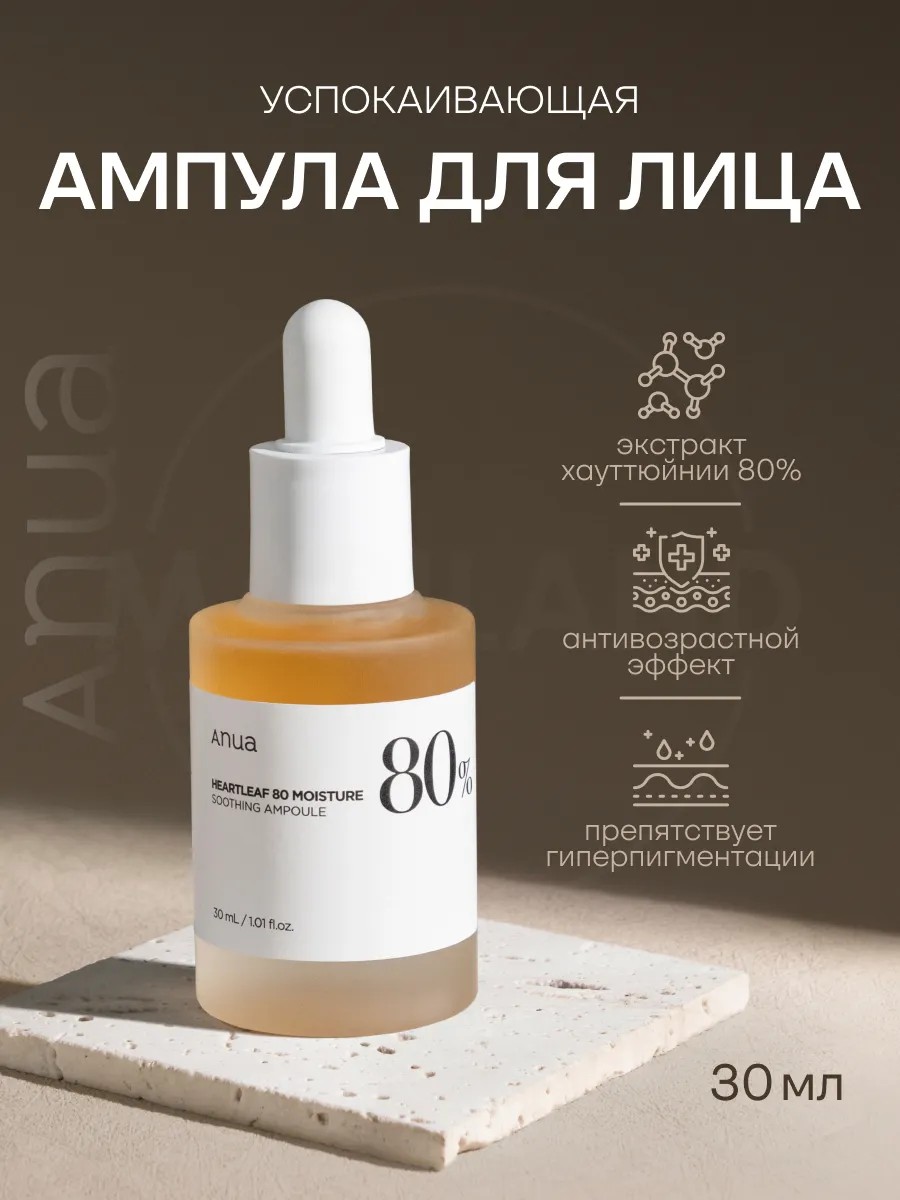 | Полное наименование товара | Anua Heartleaf 80% Soothing Ampoule 30 ml |
