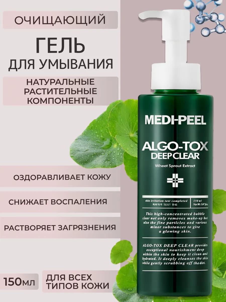 MIDI-PEEL Algo-TOX Deep Clear 2-in-1 Deep Cleansing Gel with a detox effect effectively dissolves all types of impurities, long-lasting cosmetics and foundation, dissolves sebum plugs and unclogs pores.