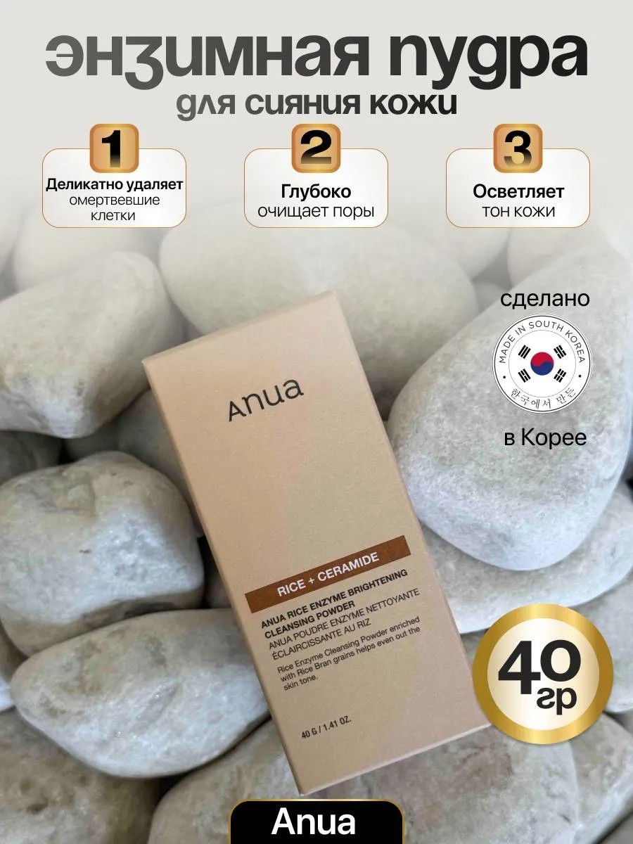 Энзимная пудра для лица с экстрактом риса Anua Rice Enzyme Brightening Cleansing Powder 40g обеспечивает глубокое очищение пор и деликатное отшелушивание без раздражений, придавая сияние коже.