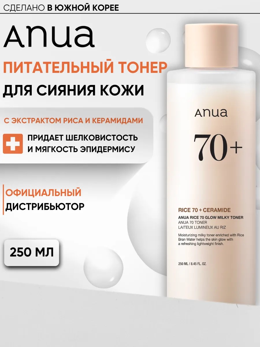 Погрузитесь в мир уникального ухода за кожей с тонером для лица Rice 70 Glow Milky Toner от Anua - топового бренда из Кореи! Нежный молочный увлажняющий тонер создан специально для того, чтобы защитить вашу кожу от раздражений и шелушений на лице. Он особенно актуален на зиму от мороза. Мощный состав интенсивно увлажняет и питает кожу, снимает воспаления, успокаивает покраснения, снимает зуд. Тоник для лица идеально подойдет для сухой кожи и кожи с нарушенным барьером благодаря содержанию церамидов и рисовых отрубей (71%). Ниацинамид выравнивает тон кожи, увлажняет, питает и восстанавливает ее, укрепляя защитный барьер и осветляет пигментацию. Будьте уверены, что ваша кожа всегда будет выглядеть сияющей и здоровой. Этот уходовый продукт от Anua обеспечит вашей коже все необходимое для красоты и здоровья. Подарите себе или своим близким уникальный уход с этим корейским тонером, который подходит для чувствительной кожи, в том числе для кожи подростков. Это отличный выбор как для женщин, так и для мужчин, которые ценят качественную уходовую косметику. Отличная идея подарка женщине на Новый год.