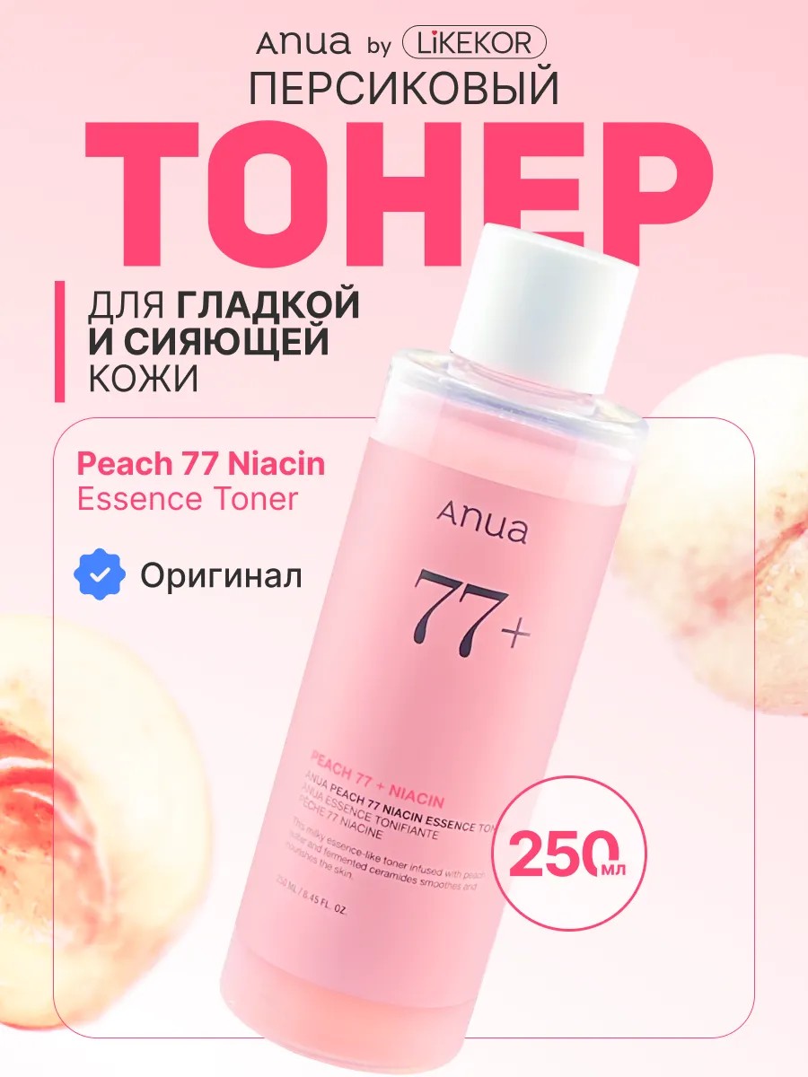 Korean Anua Peach 77 Niacin Essence Toner gently exfoliates the stratum corneum, softens and smoothes, and perfectly prepares the skin for makeup.