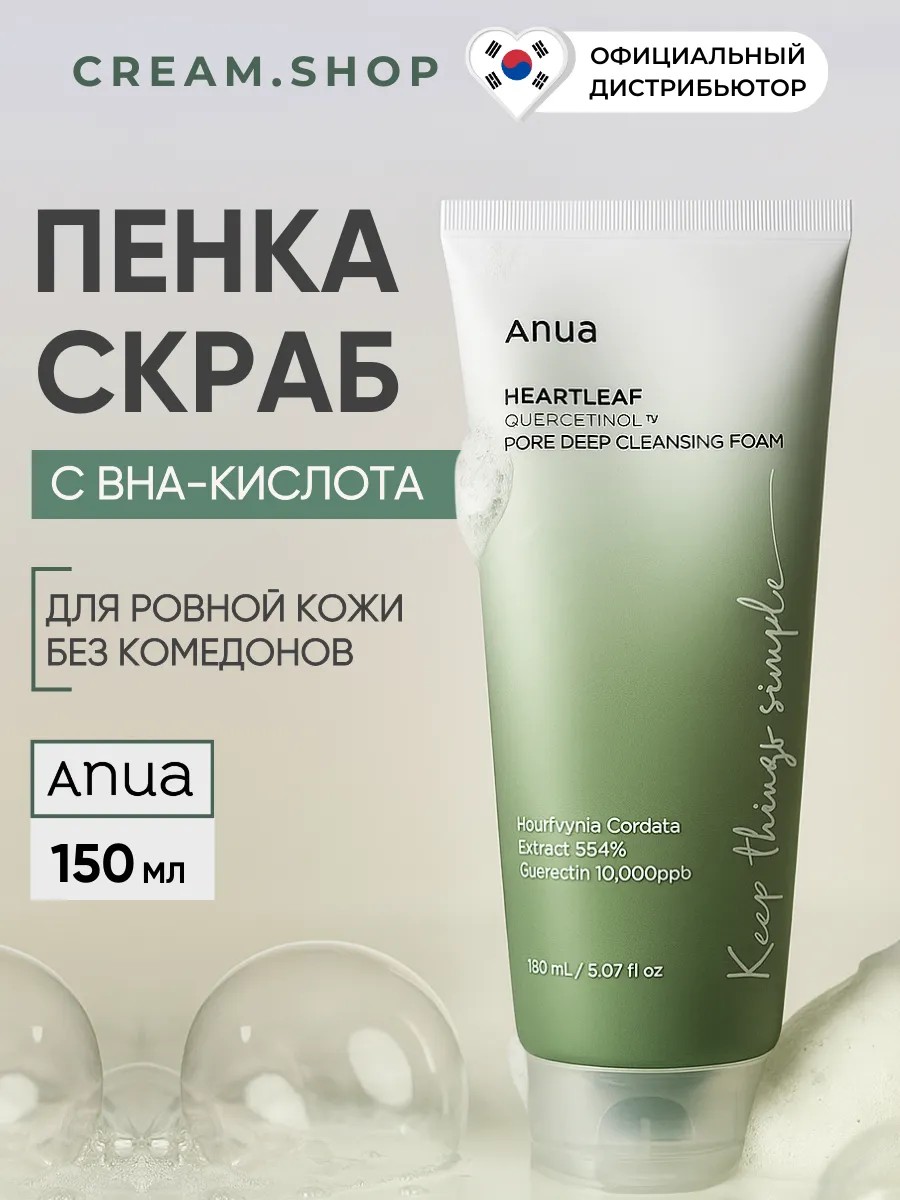 Откройте для себя уникальную пенку скраб для умывания Heartleaf Quercetinol Pore Deep Cleansing Foam от Anua - идеальное сочетание очищающих и отшелушивающих свойств для жирной и проблемной кожи, разработанное в Корее. Салициловая кислота в составе эффективно борется с жирным блеском, прыщами и комедонами, а экстракт сосны и 8 видов гиалуроновой кислоты увлажняют и успокаивают кожу. Эта мягкая умывашка также содержит кверцетинол, который снимает воспаления, помогает в борьбе с акне, уменьшает количество высыпаний. Эта пенка с кислотами подходит для подростков, помогает избавиться от покраснений, раздражений и чёрных точек, оставляя кожу чистой, сияющей и здоровой. Нежные отшелушивающие частицы листьев хауттюйнии мягко обновляют кожу, придают ей гладкость, выравнивают тон и микрорельеф. Мягкие безопасные ПАВы в составе увлажняющей пенки снимают базовый макияж, обеспечивая уход за лицом на самом высоком уровне. Подходит для подростков. Обладает унисекс составом, поэтому подходит для мужчин и женщин. Попробуйте нашу пенку для умывания из Кореи уже сегодня и почувствуйте разницу!