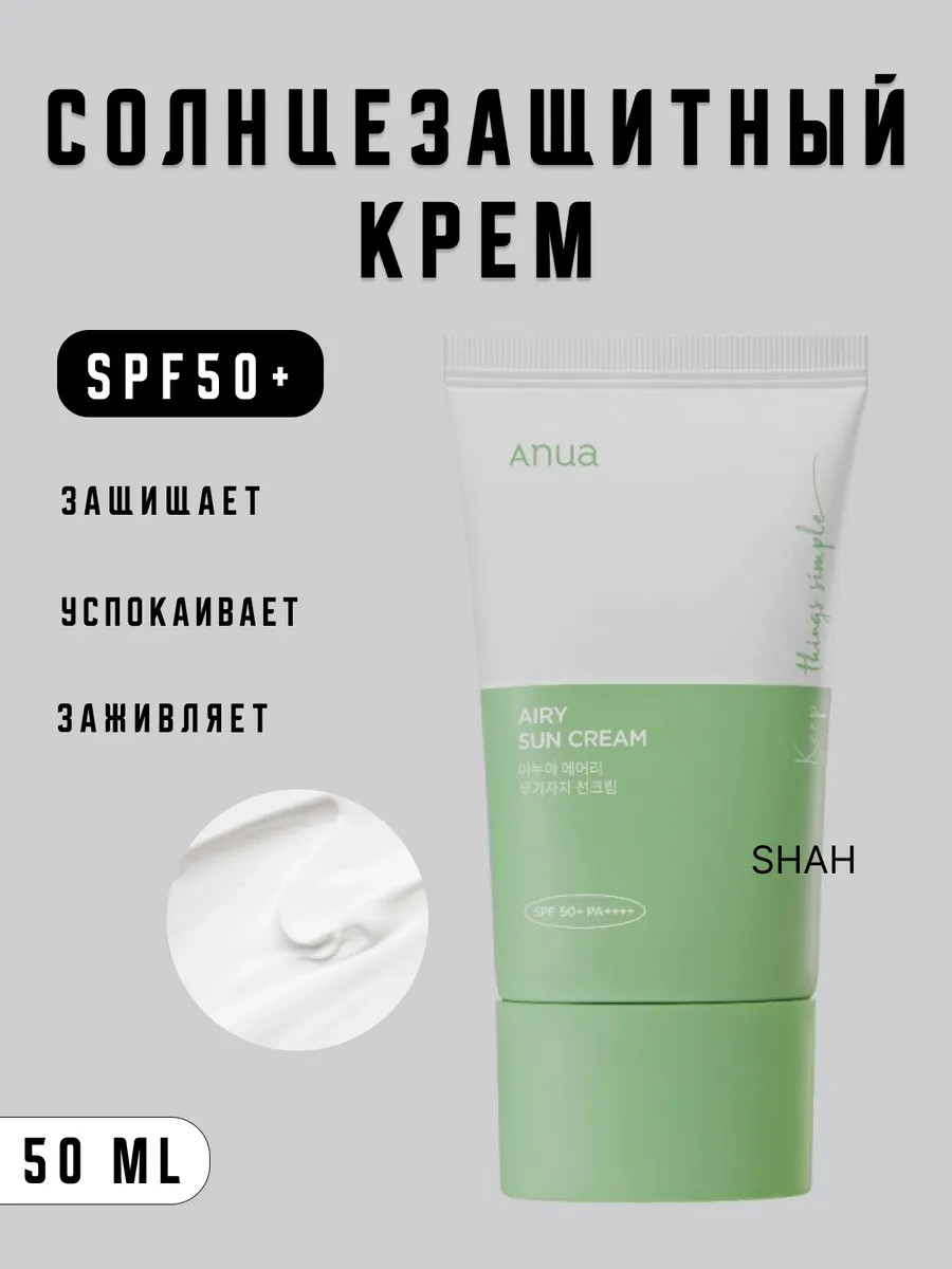 Лёгкий минеральный солнцезащитный крем Anua Airy Sun cream SPF50+ PA++++ на основе физических фильтров формирует защитный барьер на коже.