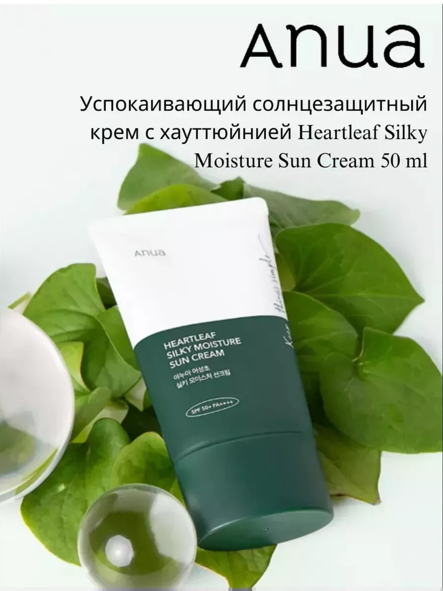 Anua Heartleaf Silky Moisture Sun Cream — это химический солнцезащитный крем, обеспечивающий защиту от солнца широкого спектра SPF 50+ PA++++.