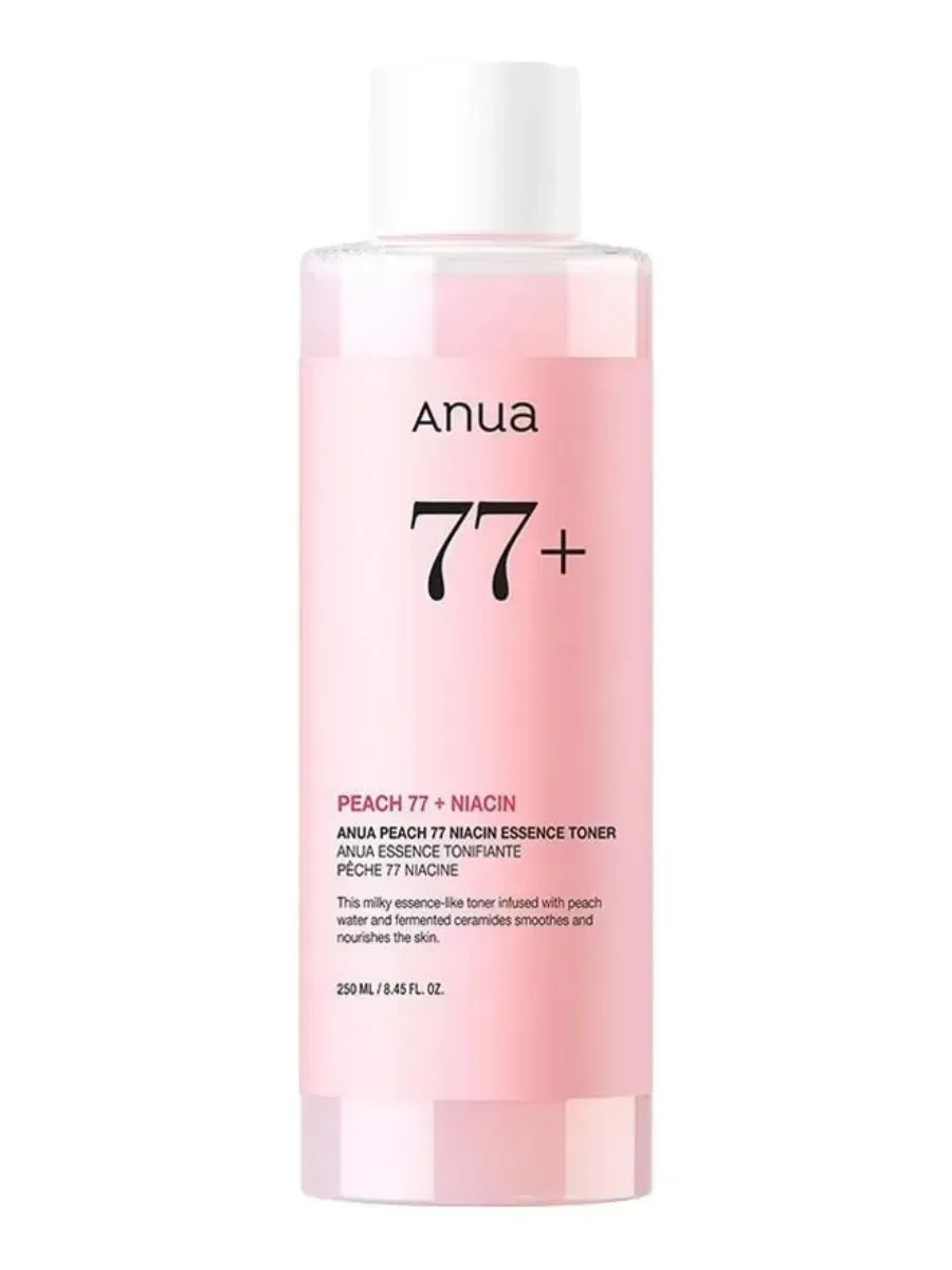 Осветляющий тонер эссенция Anua Peach 77 Niacin Essence Toner, обогащенный экстрактом плодов персика, полноценно насыщает кожу живительной влагой и обеспечивает длительное и глубокое увлажняющее действие.