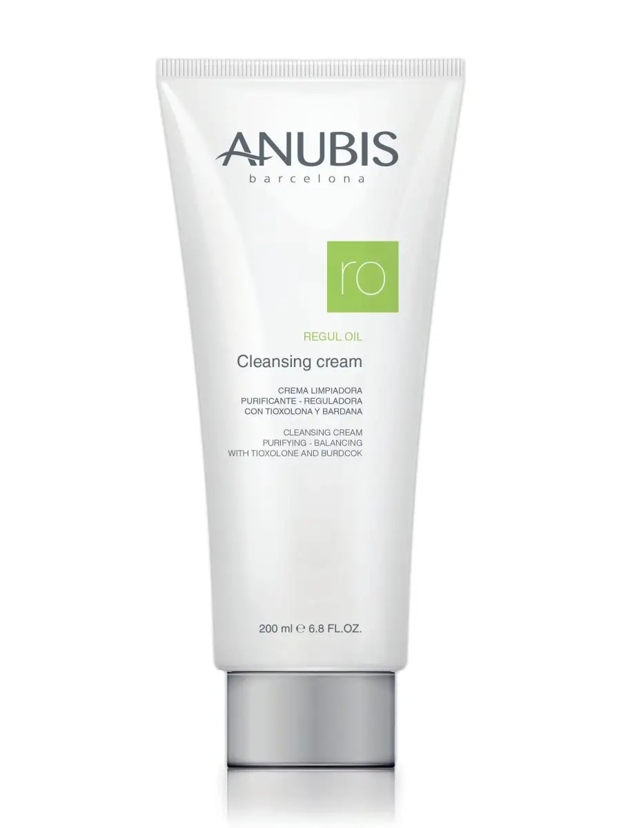 Regul Oil Cleansing Cream, 200 ml. Instantly eliminates oily shine and removes impurities from the skin. It has a powerful antioxidant and softening effect. Contains burdock extract, hops, thioxolone, and B vitamins. This lightly foaming product is suitable for both professional and home use. Thanks to castor oil, it gently cleanses the skin without overdrying it. Eliminates oily shine and reduces the appearance of pores. HOW TO USE: Lather the required amount in your hand and apply to the face. Cleanse with light massage movements. ANUBIS Barcelona is a professional, premium-quality aesthetic brand that uses advanced patented formulas and proprietary synergy. Made in Barcelona, Spain. Anubis Barcelona products are completely safe and approved for use during pregnancy and lactation. They do not disrupt the skin's hydrolipid balance and do not "roll back" the epidermis's condition to its initial state when you stop using cosmetics.