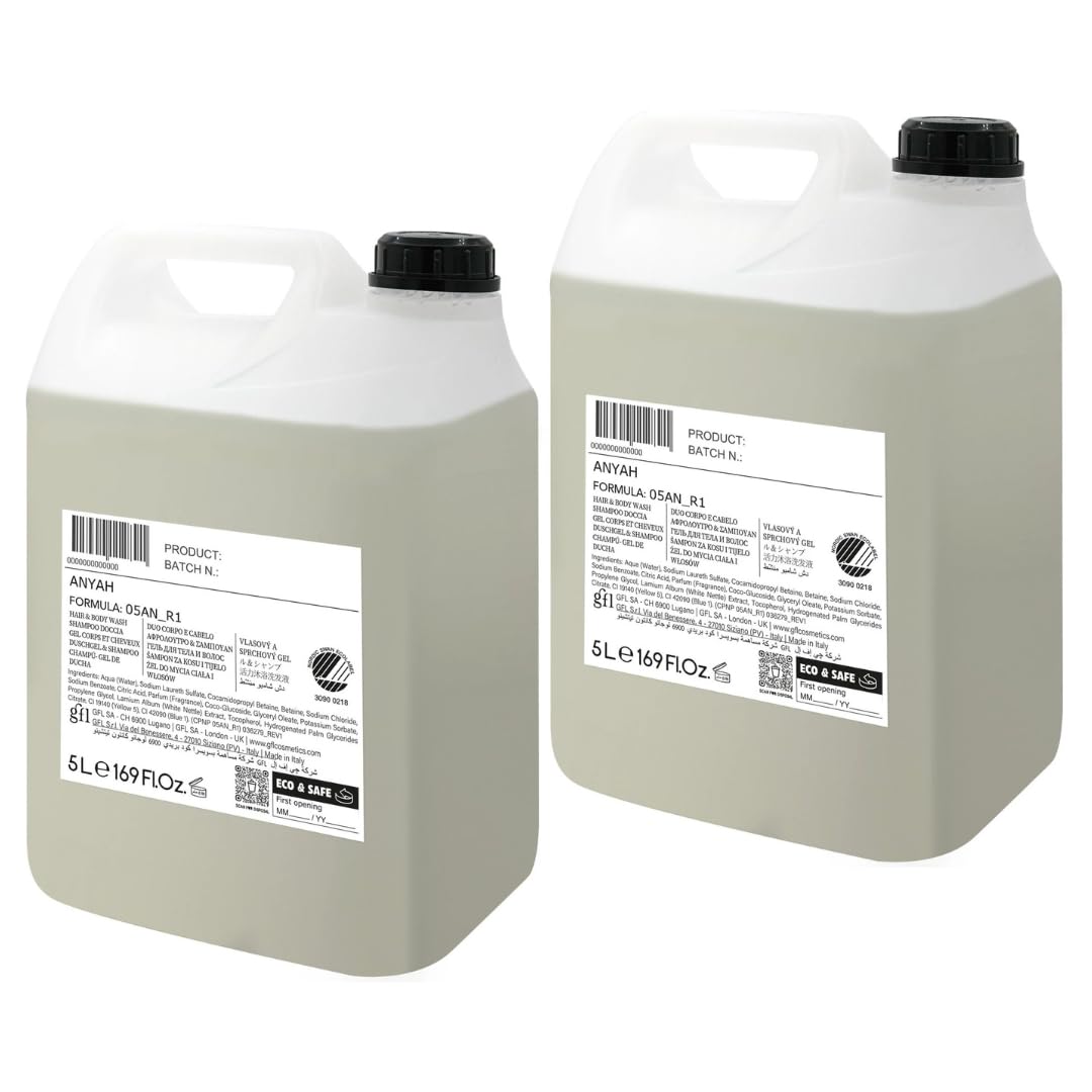 Anyah 2-in-1 Shampoo Shower Gel - Moisturizing and Gentle on Skin and Hair. Discover the perfect balance between care and sustainability with Anyah 2-in-1 Shampoo Shower Gel, enriched with organic sunflower oil and rosemary extract. This vegan and eco-friendly formula is designed to gently cleanse skin and hair, deeply nourishing and moisturizing without compromising the environment. Suitable for dry and sensitive skin, this cleansing lotion works with a deep moisturizing action, leaving skin soft and silky and hair silky and shiny. Its silicone-, alcohol-, and paraben-free formula is perfect for those seeking a product that respects both skin and the environment. Its Nordic Ecolabel certification guarantees the highest level of sustainability, with 100 recycled packaging and refillable dispensers to reduce environmental impact. Key Features: Deep hydration for dry skin and hair. Vegan - Natural formula with organic sunflower oil and rosemary extract for nourishing care. Silicone-free, paraben-free, and alcohol-free, gentle even for sensitive skin. Nordic Ecolabel certified - Eco-friendly product. Recycled packaging and refillable dispenser to reduce environmental impact. Perfect for the whole family, Anyah shower shampoo offers complete body and hair care, ensuring a gentle and natural cleansing experience. Choose quality, choose sustainability, choose Anyah. INGREDIENTS Aqua (WATER), SODIUM LAURETH SULFATE, COCAMIDOPROPYL BETAINE, BETAINE, SODIUM CHLORIDE, SODIUM benzoate, CITRIC ACID, PARFUM (Fragrance), COCOCO-GLUCOSIDE, GLYCERYL OLEATE, POTASSIUM SORBATE, PROPYLENE GLYCOL, LAMIUM ALALUM BUM (WHITE NETTLE) EXTRACT, TOCOPHEROL, HYDROGENATED PALM GLYCERIDES CITRATE, CI 19140 (Yellow 5), CI 42090 (BLUE 1). (CPNP 05AN_R1) SAFETY WARNING Avoid contact with eyes – In case of contact with eyes, rinse immediately with plenty of water. If irritation persists, consult a doctor. See moreCertified Life Cycle Assessment – Transparent Sustainability: The product's environmental impact is calculated throughout its entire lifecycle, from formulation to disposal, for a greener future. Vegan and Natural Formula – Alcohol-free, silicone-free, and EDTA-DTPA-free, for gentle cleansing that respects hair and body. Safe and Tested for All Skin Types – Dermatologically and nickel-tested to ensure compatibility with sensitive skin and safety for daily use without irritation. Versatile Use: Ideal for professional use in high-traffic environments such as hotels, wellness centers, and gyms. 2 x 5-liter containers, perfect for refilling dispensers and reducing waste. Complete Hair and Body Care – Gentle shower shampoo with white nettle extract, ideal for cleansing, moisturizing, and rebalancing dry skin and sensitive scalps. Softer, healthier, and shinier hair with every use.ANYAH Shampooing Douche 2-en-1 - 2x5L - Ortie Blanche - Vegan - Recharge Professionnel pour Corps et Cheveux - Certifié Nordic EcolabelDESCRIPTION DU PRODUIT DESCRIPTION DU PRODUIT Anyah Shampooing Douche 2 en 1 - Hydratant et doux pour la peau et les cheveux Découvrez le parfait équilibre entre soin et durabilité avec Anyah Shampooing Douche 2 en 1, enrichi en huile de tournesol biologique et en extrait de romarin. Cette formule végétalienne et respectueuse de l'environnement est conçue pour offrir un nettoyage doux pour la peau et les cheveux, nourrissant et hydratant en profondeur sans compromettre l'environnement. Convient pour les peaux sèches et sensibles, cette lotion nettoyante agit avec une action hydratante profonde, laissant la peau douce et soyeuse et les cheveux soyeux et brillants. Sa formule sans silicone, alcool et paraben est parfaite pour ceux qui recherchent un produit qui respecte la peau et l'environnement. Sa certification Nordic Ecolabel garantit le plus grand respect de la durabilité, avec des emballages 100 recyclés et des distributeurs rechargeables pour réduire l'impact environnemental. Principales caractéristiques : Hydratation profonde pour la peau et les cheveux secs. Vegan - Formule naturelle à l'huile de tournesol bio et extrait de romarin pour un soin nourrissant. Sans silicone, parabène et alcool, doux même pour les peaux sensibles. Certifié Nordic Ecolabel - Produit écologique Emballage recyclé et distributeur rechargeable pour réduire l'impact environnemental. Parfait pour toute la famille, le shampooing douche Anyah vous offre un soin complet du corps et des cheveux, assurant une expérience de nettoyage douce et naturelle. Choisissez la qualité, choisissez la durabilité, choisissez Anyah. INGRÉDIENTS Aqua (WATER), SODIUM LAURETH SULFATE, COCAMIDOPROPYL BETAINE, BETAINE, SODIUM CHLORIDE, SODIUM benzoate, CITRIC ACID, PARFUM (Fragrance), COCOCO-GLUCOSIDE, GLYCERYL OLEATE, POTASSIUM SORBATE, PROPYLENE GLYCOL, LAMIUM ALALUM BUM (WHITE NETTLE) EXTRACT, TOCOPHEROL, HYDROGENATED PALM GLYCERIDES CITRATE, CI 19140 (Yellow 5), CI 42090 (BLUE 1). (CPNP 05AN_R1) AVERTISSEMENT DE SÉCURITÉ Évitez le contact avec les yeux – En cas de contact avec les yeux, rincer immédiatement avec beaucoup d'eau. Si l'irritation persiste, consultez un médecin. Voir plusCertifié Life Cycle Assessment - Durabilité transparente : l'impact environnemental du produit est calculé tout au long du cycle de vie, de la formule à l'élimination, pour un avenir plus vert. Formule végétalienne et naturelle – Sans alcool, sans silicone et EDTA-DTPA, pour un nettoyage délicat et respectueux pour les cheveux et le corps. ✓ Sûr et testé pour tous les types de peau – Testé dermatologiquement et testé au nickel pour garantir la compatibilité avec la peau sensible et la sécurité d'utilisation quotidienne sans irritation. Polyvalence d'utilisation : idéal pour un usage professionnel dans des environnements à fort trafic comme les hôtels, les centres de bien-être et les gymnases. 2 x Bidon de 5 litres, parfait pour recharger le distributeur et réduire le gaspillage. ? Soin complet pour cheveux