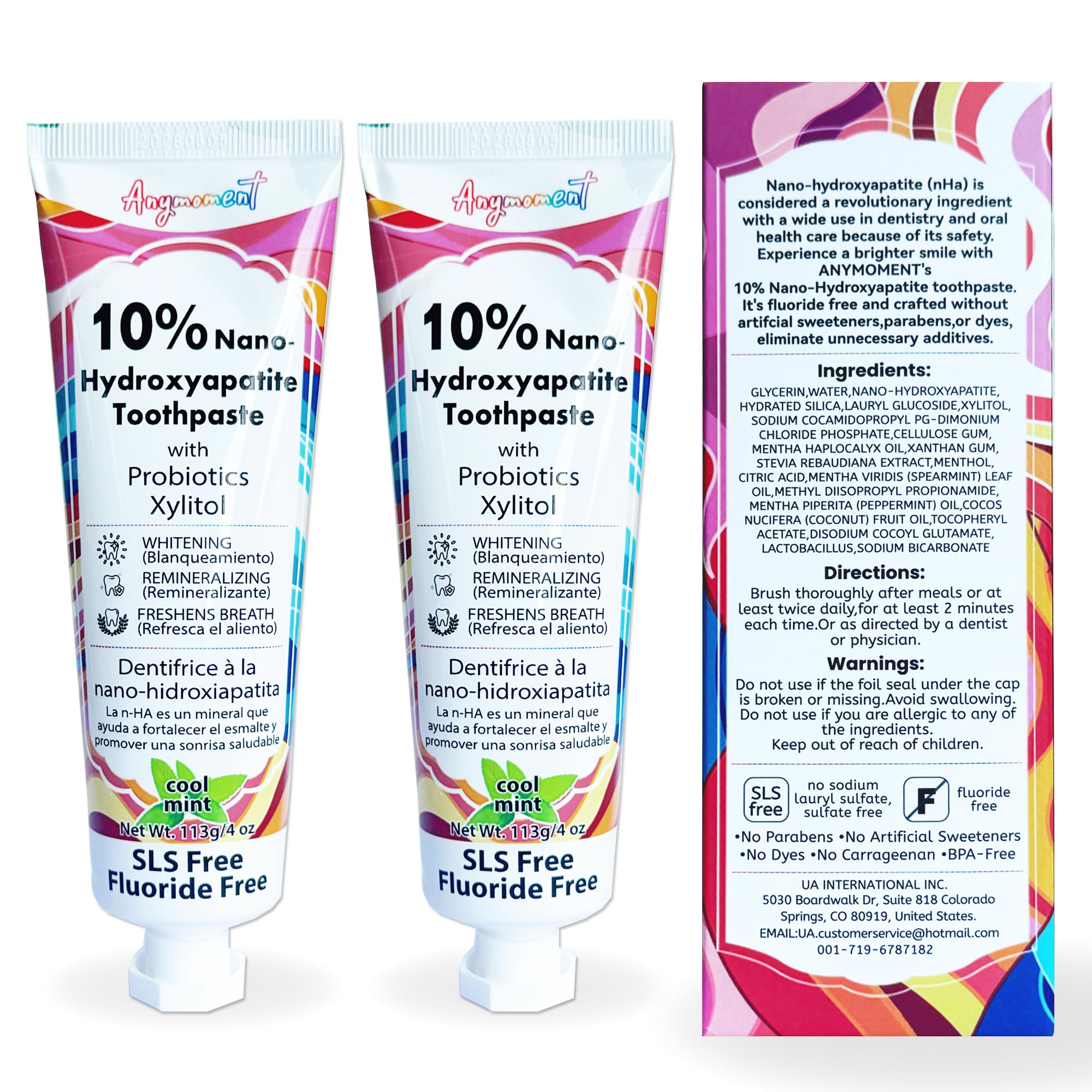 Anymoment 10% Nano Hydroxyapatite Toothpaste (Fluoride Free), Whitening*, Supports Enamel Care*, Appropriate for Sensitive Teeth*, SLS Free, Xylitol nHA Toothpaste for Adults, Mint 4oz (Pack of 2)