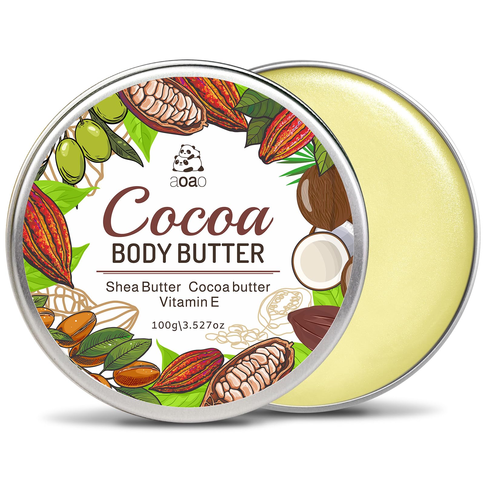 AOAO Cocoa & Shea Body Butter for Rough Cracked Skin Deep Hydrating Treatment Melts into Rough Skin for Rapid Relief & Long-Lasting Smoothness Daily Moisturizer to Soothe Dryness 100g/3.5oz
