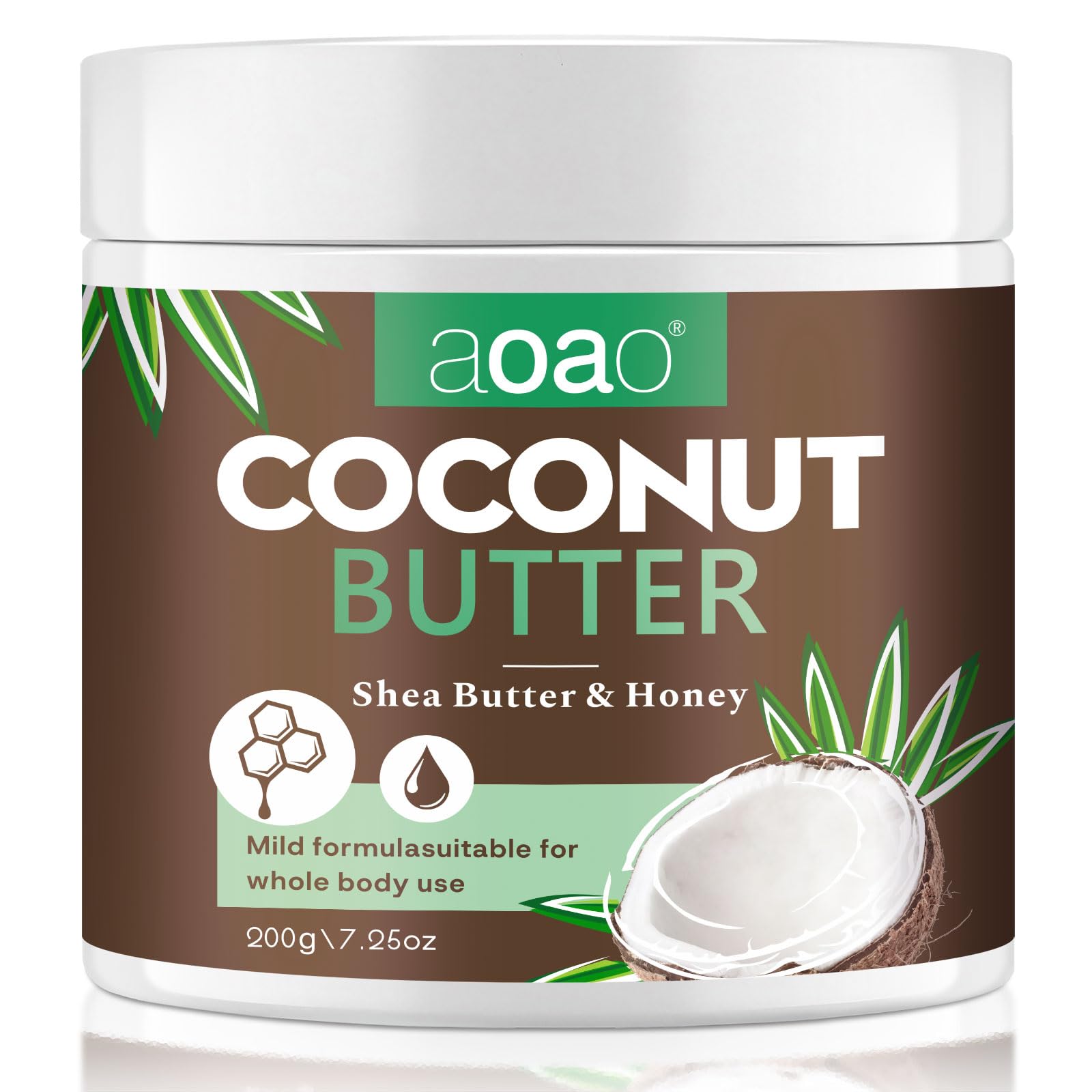 Indulge in All-Day Comfort: Nourishing Coconut Body Butter Dream of skin that feels effortlessly soft and cared for, all day long? Our Coconut Body Butter is meticulously crafted to provide lasting moisture and a velvety-smooth feel. Enriched with a harmonious blend of Coconut Oil, Shea Butter, and Olive Oil, this butter works to support your skin's natural moisture balance. It's the simple, daily luxury your skin has been waiting for. Key Benefits How They Elevate Your Skin: Coconut Oil Shea Butter: These cherished ingredients are known for their ability to help moisturize the skin. They work together to provide a long lasting moisturizer effect, helping to prevent moisture loss and leaving your skin feeling comfortably nurtured. Olive Oil Honey Extract: This pairing delivers vitamins and antioxidants to the skin's surface. The result is a noticeable improvement in skin texture, making skin soft and smooth to the touch with regular use. Lightweight, Fast-Absorbing Texture: We understand the need for a non-greasy feel. Our butter is designed to absorb quickly, allowing you to dress almost immediately without a sticky residue. It provides substantial hydration while maintaining a lightweight, comfortable feel on the skin. Versatile Gentle Care: Created with a thoughtful approach, this formula is good for sensitive skin and suitable for the entire family. Its versatility allows it to be used as an all-over body cream, a targeted hand treatment, or even to tame flyaways, offering good value for a multi-purpose skincare solution. Why Make It Yours? Dewy Hydration Without Heaviness: Experience the joy of a rich butter that melts into the skin, delivering deep nourishment without a thick, occlusive layer. Your skin is left with a healthy-looking, dewy finish. Thoughtful, Skin-Loving Ingredients: We've focused on plant-derived oils and butters to create a formula that feels as good as it works. Love the quality of a product dedicated to effective, straightforward skincare. Generous Jar, Lasting Value: With a substantial 200g 7.25oz size, this jar is designed to be a reliable part of your daily routine, offering a good value that you can feel good about. Embrace the simple pleasure of skin that feels consistently comfortable, soft, and cared for. Welcome this Coconut Body Butter into your ritual and let your skin enjoy lasting comfort.All-Over Body Use: One jar takes care of your entire body—from face to elbows and ankles. The lightweight texture absorbs quickly into every area, delivering even hydration and leaving your skin uniformly soft and smooth. Gentle Suitable for All Skin Types: Crafted with plant-based ingredients, our formula is gentle and safe for all skin types. Whether your skin is dry, sensitive, or oily, it provides the right level of moisture for effective, worry-free daily care. Lightweight Fast-Absorbing: Rich in texture yet surprisingly lightweight, it melts quickly upon contact with your skin, delivering nutrients deep within. Enjoy intense moisturization without any heaviness—just a refreshing, pleasant experience every day. Long-Lasting Hydrating: Say goodbye to dry skin and welcome 24-hour hydration. This body butter not only smooths rough skin instantly but also forms a protective barrier to prevent moisture loss. Your skin stays soft, supple, and elastic all day, with a comfortable, non-greasy feel. Deep Nourishment: Our Coconut Body Butter features a powerful blend of four natural treasures: Coconut Oil, Shea Butter, Honey Extract, and Olive Oil. This rich formula delivers intense moisture—Shea Butter and Honey Extract provide deep hydration, while Coconut Oil and Olive Oil lock in moisture effectively. It revives dry skin, leaving it soft, smooth, and silky.