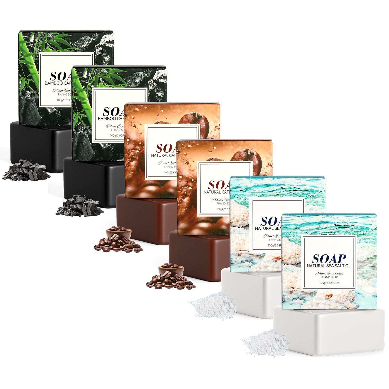 Features: • Deeply cleanses the skin, leaving it healthy and revitalized. • Triple-grinding process for more even application. • Moisturizing, creates a hydrating barrier. • Suitable for different skin types and for cleansing different areas. Technical Specifications: • Material: Paste. • Weight: 100g (one piece) Package Contents: • 2 x Sea Salt. • 2 x Coffee. • 2 x Bamboo Charcoal. Note: Due to manual measurement, there may be slight size errors. Due to the shooting environment, there may be slight color variations. SAFETY WARNING For external use only.Versatile This soap can be used on the face, hands, neck, underarms, inner thighs, and more, ensuring thorough cleansing and meticulous care. Gentle ingredients: This solid soap's mild formula, free of harsh chemicals, is suitable for all skin types. With continued use, skin will become softer, smoother, and more supple. Nourishing and Moisturizing Enriched with powerful moisturizing factors, this fragrant soap not only gently and effectively cleanses but also deeply hydrates and repairs the skin. It helps strengthen the skin barrier, replenishes moisture, and restores elasticity. Triple Milling Transform your daily cleansing routine into a luxurious spa experience at home. Formulated with pure and natural ingredients, the rich texture of this soap leaves face and body deeply cleansed, long-lasting moisturized, and luxuriously nourished, leaving skin silky smooth. Deep Cleansing This natural soap, formulated with natural cleansing ingredients, deeply cleanses pores, removing excess oil, dirt, and dead skin cells. It helps improve skin texture, leaving it healthy and revitalized.AOOWU Lot de 6 savons gel douche cosmétique naturel Savon solide pour le visage et le corps - Pour un nettoyage en douceur de la peau - Hommes et femmes 2 x sel de mer 2 x café 2 x charbon de bambouDESCRIPTION DU PRODUIT DESCRIPTION DU PRODUIT Caractéristiques : Nettoie en profondeur la peau, la laissant saine et revitalisée. Processus de triple broyage pour une application plus uniforme. Hydratant, crée une barrière hydratante. Convient à différents types de peau et pour le nettoyage de différentes zones. Caractéristiques techniques : Matériau : pâte. Poids : 100 g (une seule pièce) Contenu du packaging : 2 x sel marin. 2 cafés. 2 charbon de bambou. Remarque : En raison de la mesure manuelle, il peut y avoir quelques erreurs de taille. En raison de l'environnement de prise de vue, il peut y avoir quelques variations de couleur. AVERTISSEMENT DE SÉCURITÉ Pour un usage externe uniquement.Polyvalent Ce savon peut être utilisé sur le visage, les mains, le cou, les aisselles, l'intérieur des cuisses et plus encore, assurant un nettoyage complet et un soin méticuleux. Ingrédients délicats : ce savon solide formule douce, sans produits chimiques agressifs, convient à tous les types de peau. Avec une utilisation continue, la peau deviendra plus douce, lisse et élastique. Nourrissant et hydratant Savon parfumé enrichi en puissants facteurs hydratants, ce savon nettoie non seulement doucement et efficacement, mais hydrate et répare également la peau en profondeur. Aide à renforcer la barrière cutanée, réintègre l'hydratation et restaure l'élasticité. Triple broyage Transformez votre nettoyage quotidien en une expérience de spa luxueuse à la maison. Formulé avec des ingrédients purs et naturels, la texture riche de ce savon laisse visage et corps profondément nettoyés, hydratés pendant longtemps et nourris de manière luxueuse, laissant la peau soyeuse et lisse. Nettoyage en profondeur Savon naturel formulé avec des ingrédients nettoyants naturels, ce savon purifie en profondeur les pores, en éliminant l'excès de sébum, la saleté et les cellules mortes. Aide à améliorer la texture de la peau, la laissant saine et revitalisée.