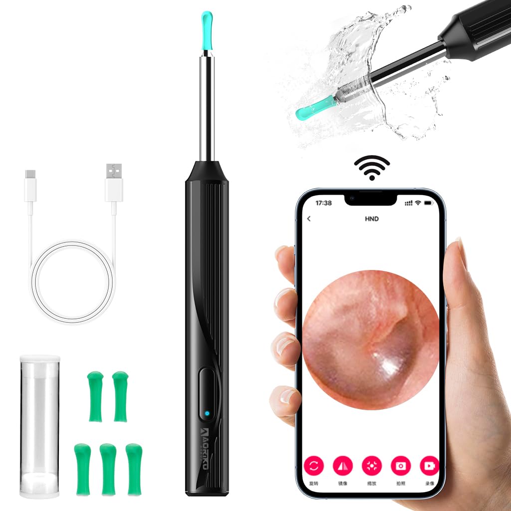 [Reliable support] Please feel free to contact us by e -mail about any questions before purchg.We will provide support from AORIKO. Thank you very much for enjoying various uses in your daily life. [Type-C cable] A Type-C charging cable is included, and it takes only 60 minutes to fully charge the main unit. Once charged, you can use it for about 35 minutes. It is easy to clean even if it gets a little waterproof at the waterproof IPX5 level. [High quality lightweight easy] Equipped with a high quality camera and LED, you can see object clearly details in a dark areas. The lens diameter is 3.6 mm and the main body weighs only 13 grams, holding the main body by hand and can easily hear it without stress. It is lightweight and easy to carry on a trip or business trip, so you can enjoy it everywhere. The head spoon can be seen more comfortably with a soft silicon material. [App cooperation easy] The Ear Wax Removalmain unit is integrated with WiFi, Camera Lens, and can be easily linked with smartphone apps via WiFi. It is safe because a English manual will be attached. [Visible Ear Wax Removal] Anxiety is uneasy, it s safe that can be see. The Ear Wax Removalequipped with a camera and LED light is connected to the smartphone application, checking the image reflected inside the ear, easily removing earwax, safer and more secure! It is also useful for checking your mouth and nose, and can be used for cleaning pets and care. It can also be used for observing animals and plants, and you can clearly see the details such as flowers, leaves, and stems. It is widely used, including children and the elderly.