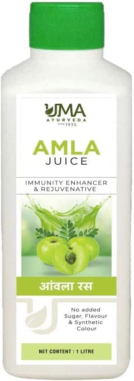 This amla (Indian gooseberry) juice from Uma Ayurveda boosts immunity and is an excellent rejuvenator. It is also an energy booster. It is helpful for hyperacidity, eye conditions, and skin diseases, and it slows down aging. Because the juice is pure, with no added sugar, artificial flavors, or colors, it promotes overall health. Shake well before use. Take 15-20 ml of juice twice a day with an equal amount of water, or as directed by your doctor. Consume within 1 month of opening the package. You don't need to hesitate before ordering because the juice is prepared in Uma Ayurveda's GMP-certified facility, so you can be assured of the highest quality.