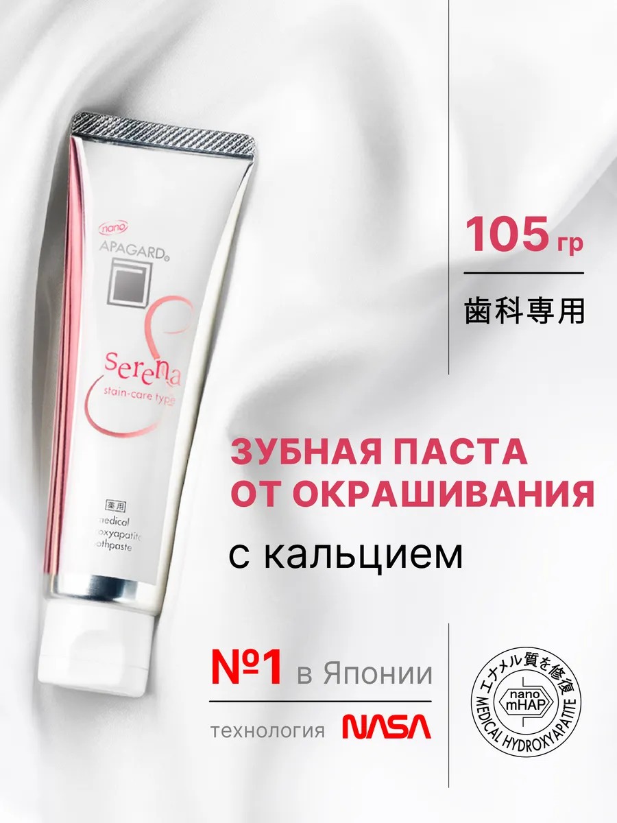 Японская реминерализующая зубная паста с кальцием без фтора APAGARD Serena 105 гр. устраняет пигментные пятна, вызванные полифенолами кофе, чая, темного шоколада и других красящих продуктов. Отбеливающая зубная паста APAGARD Serena восстанавливает минеральный баланс эмали и защищает ее от окрашивания. Сохраняет ощущение гладких зубов в течение дня и это новые ощущения. Почувствуй! Заботится не только о красоте улыбки, но и о ее здоровье, возвращая природную белизну и невероятное сияние.