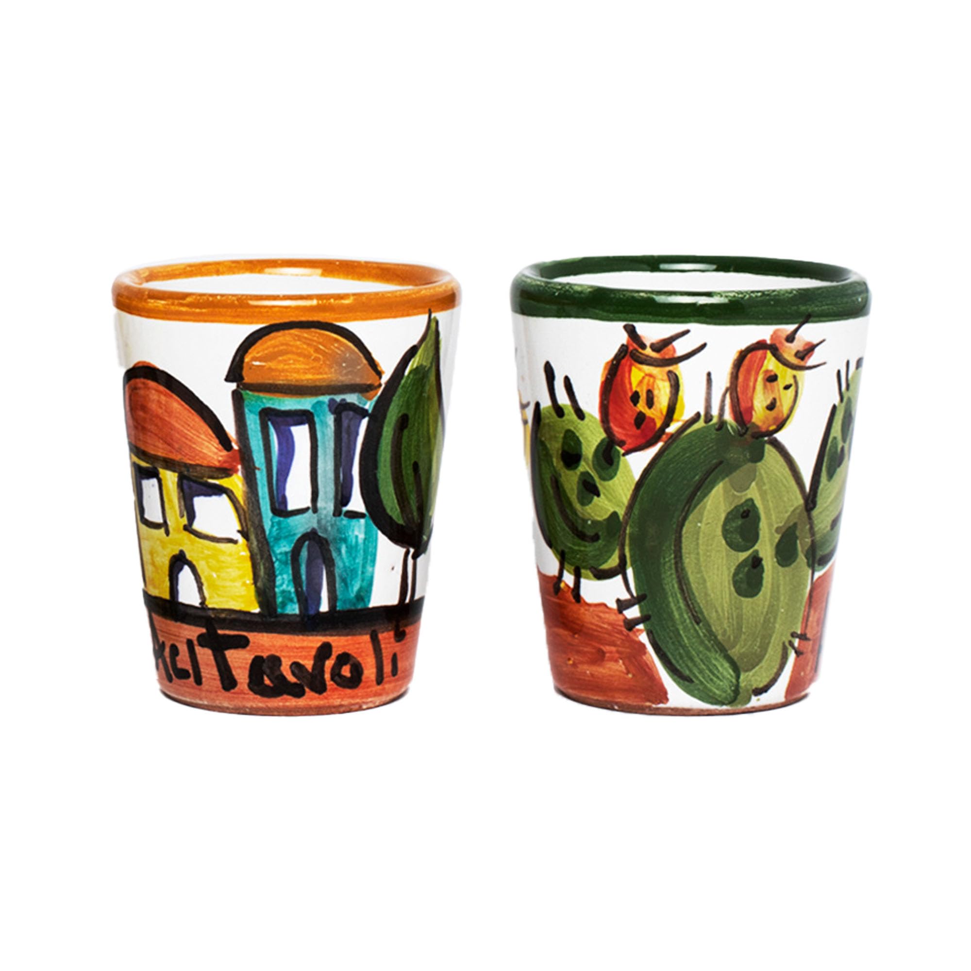 Aperitivo Siciliano - 4 Petites tasses en céramique de Caltagirone peintes à la main - Fabriquées en Italie
