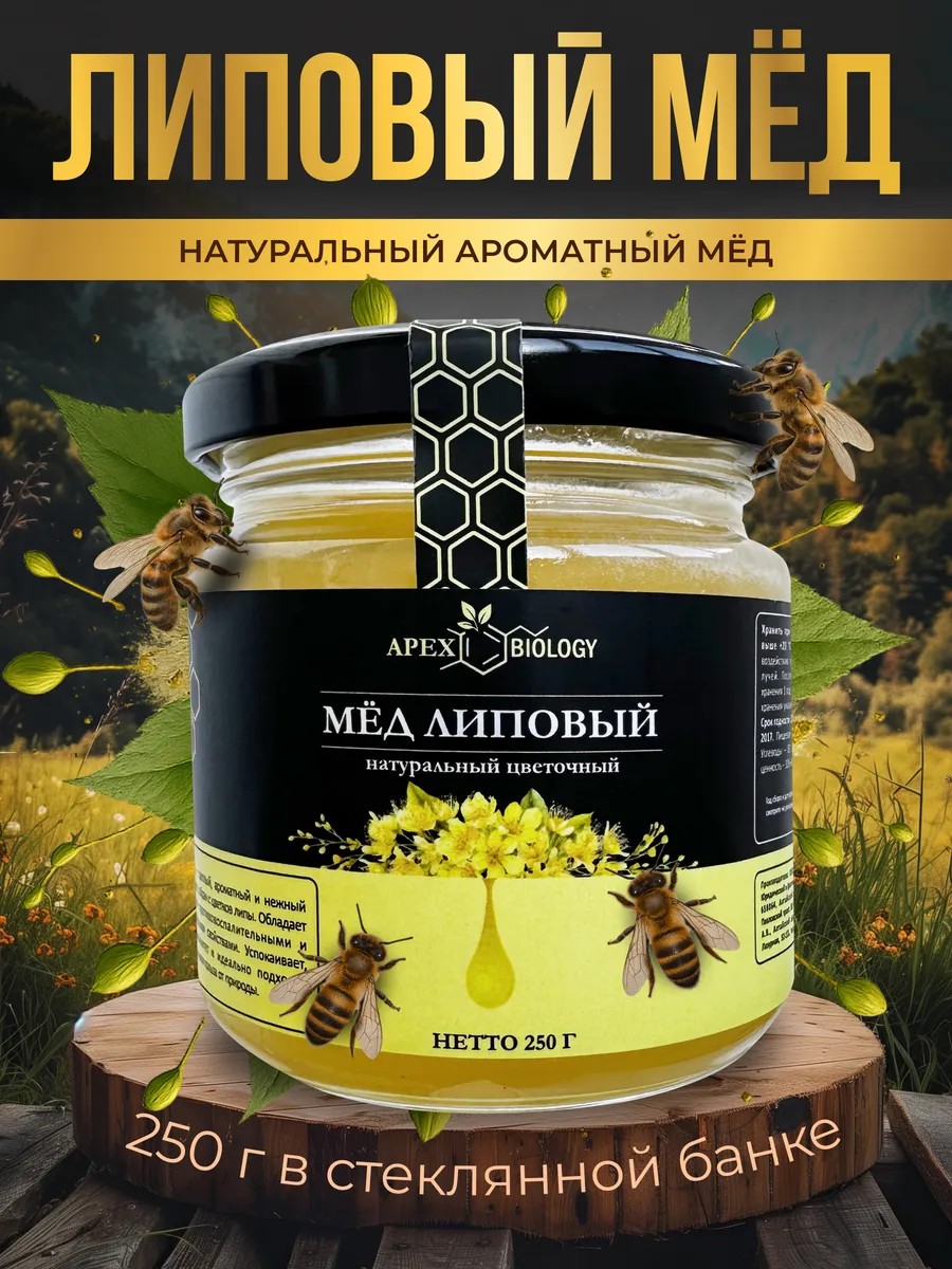 APEX BIOLOGY Мёд натуральный липовый, вкусный полезный продукт 250 грамм