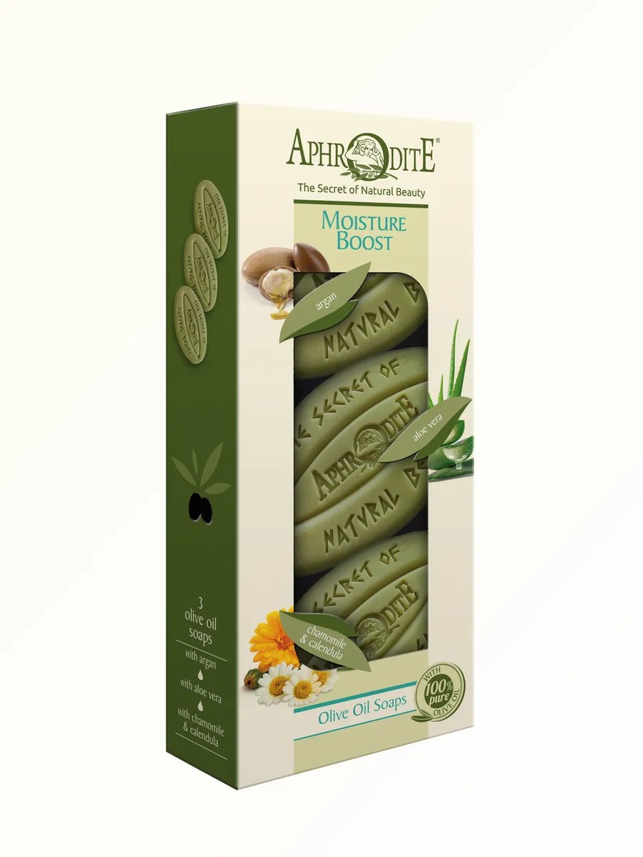 Aphrodite Мыло натуральное оливковое аргана, алоэ, ромашка, 85 гр х 3
