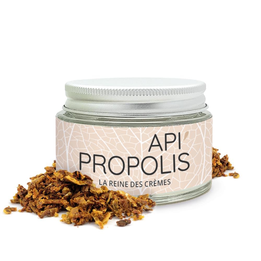 Organic Propolis Cream, created and manufactured by our laboratory in Provence, is a high-quality product. Suitable for all skin types, especially problem, damaged, and dry skin, it is highly concentrated in organic Propolis extract (made with 20 organic raw propolis), renowned for its many benefits.Suitable for all skin types. Made in our laboratory in Provence. Free from endocrine disruptors, alcohol, dioxin, nickel, chromium, and cobalt. Healing, purifying, and restorative, it relieves skin problems (acne, psoriasis, eczema, and mycosis). From organic farming. Very soft, creamy face cream with a light texture and pleasant scent. Highly concentrated in organic Propolis extract (made with 20 organic raw propolis). Crème à la Propolis BIO, créée et fabriquée par notre laboratoire en Provence, est un produit de grande qualité. Indiquée pour tous les types de peaux et notamment les peaux à problèmes, abimées et sèches, elle est très concentrée en extrait de Propolis BIO (réalisée avec 20 de propolis brute Bio) réputée pour ses nombreuses vertus.Indiquée pour tous les types de peaux. Fabriquée par notre laboratoire en Provence. Sans perturbateur endocrinien, sans alcool, sans dioxine, sans nickel, chrome, cobalt. Cicatrisante, purifiante et réparatrice elle soulage les problème de peau (acné, psoriasis, eczéma et mycose). Issu de l'agriculture biologique. Crème onctueuse très douce visage, texture légère et odeur agréable. Très concentrée en extrait de Propolis BIO (réalisée avec 20 de propolis brute Bio).