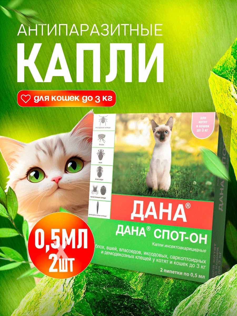 Надоели бесконечные проблемы с блохами и клещами? Забудьте о хлопотах с шампунями и ошейниками! Простое и удобное решение – капли ДАНА СПОТ ОН. Достаточно одной капли на холку вашего питомца, чтобы обеспечить надежную защиту от паразитов до 4 недель. Больше никаких беспокойств о том, что ваш четвероногий друг подвергнется нападению насекомых – ДАНА СПОТ ОН действует быстро и эффективно, избавляя вас от лишних хлопот.