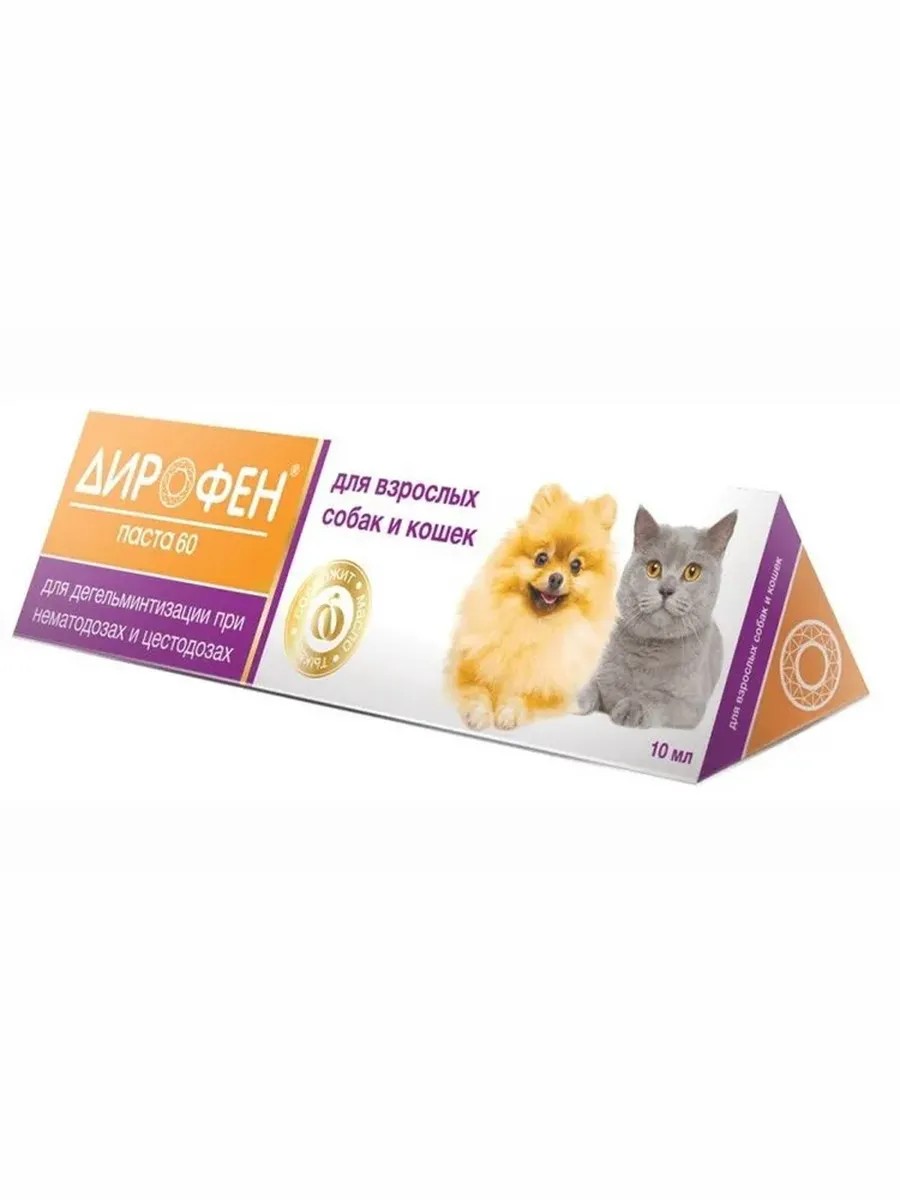 | Полное наименование товара | ДИРОФЕН паста 60 от гельминтов для взрослых собак и кошек, 10 мл |