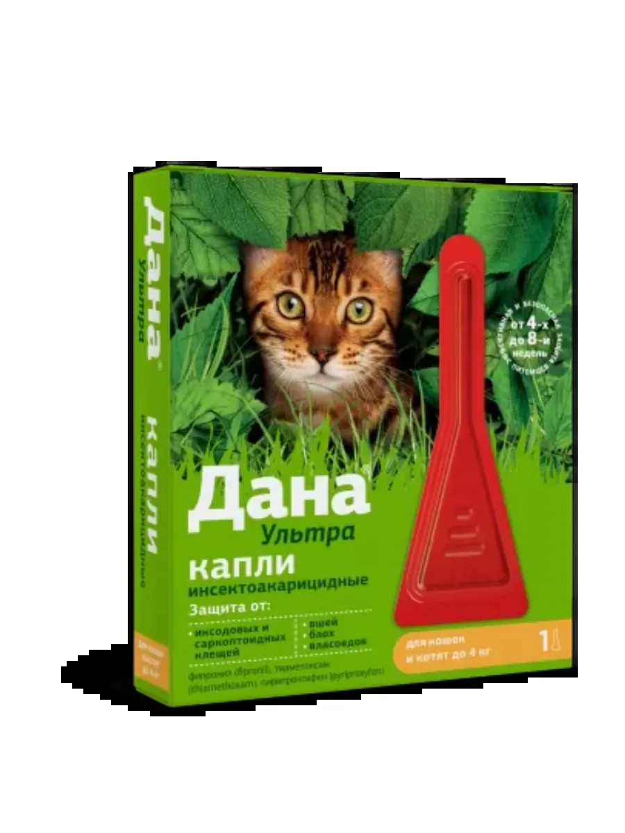 Капли инсектоакарицидные на холку Дана Ультра для кошек и котят до 4 кг