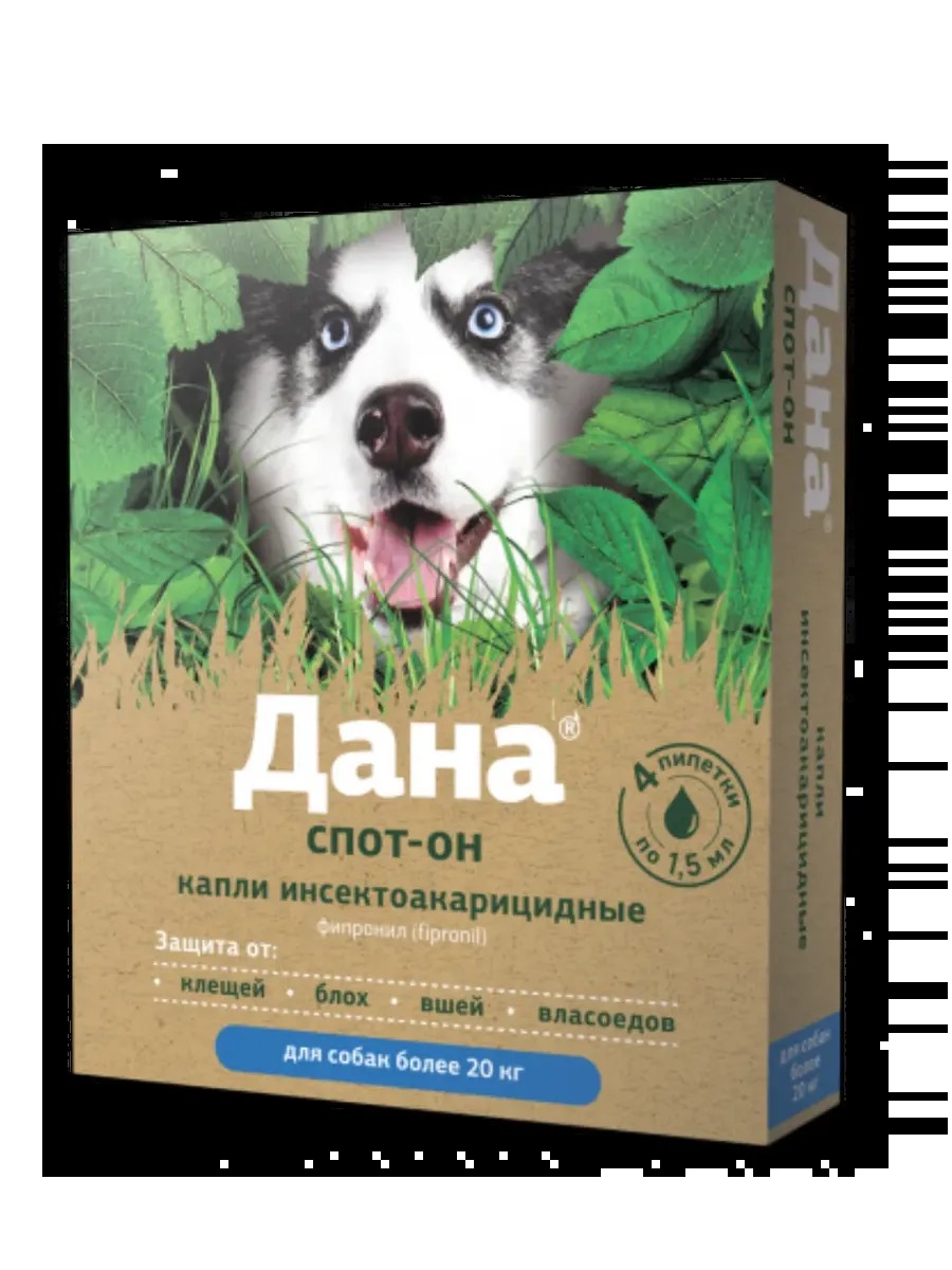 Dana Spot-on is prescribed to dogs and cats from 12 weeks of age for the treatment and prevention of entomoses caused by fleas, lice and chewing lice; acaroses caused by sarcoptic, ixodid and demodectic mites, fur animals - for the treatment and prevention of otodectosis.