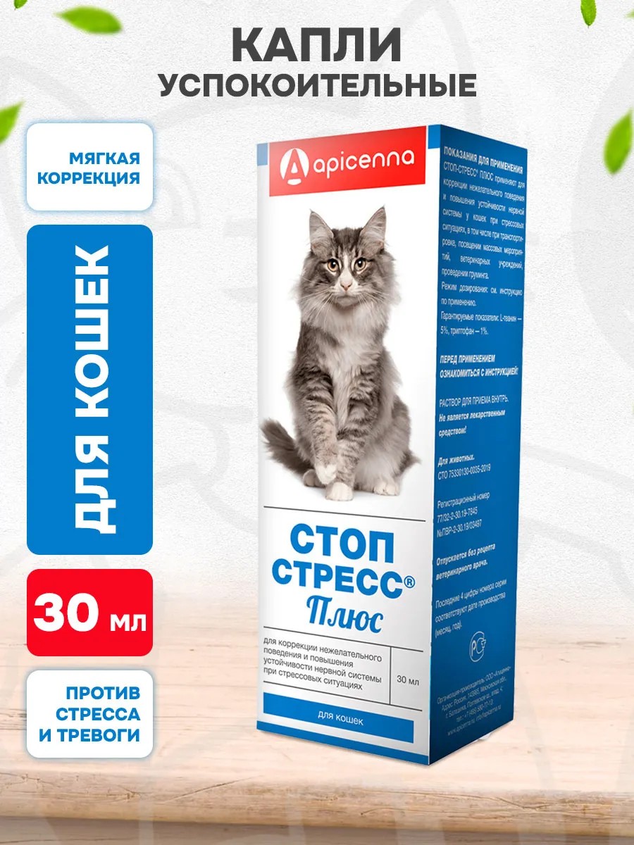apicenna Капли Стоп Стресс Плюс для кошек коррекция поведения 30 мл