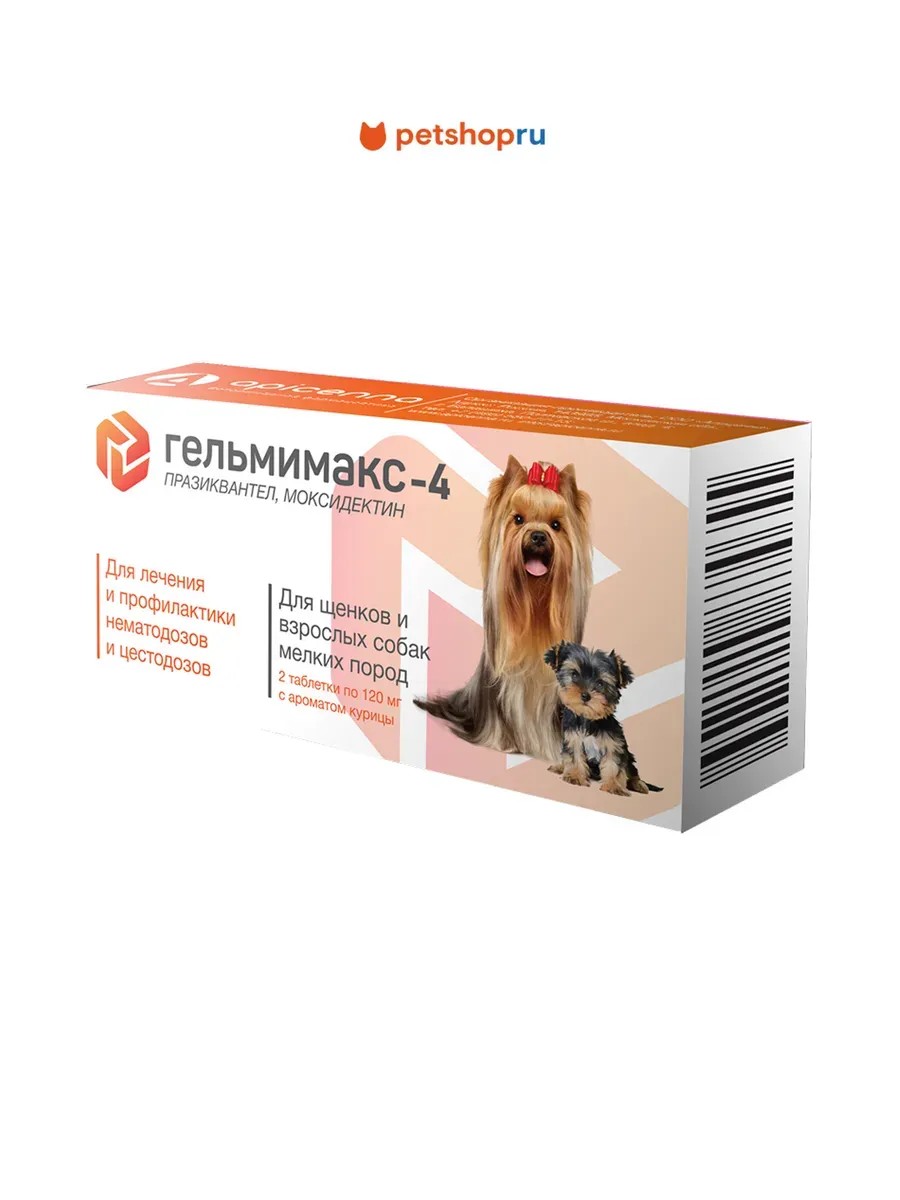 apicenna Гельмимакс 4 для собак мелких пород, 2 таблетки 120 мг