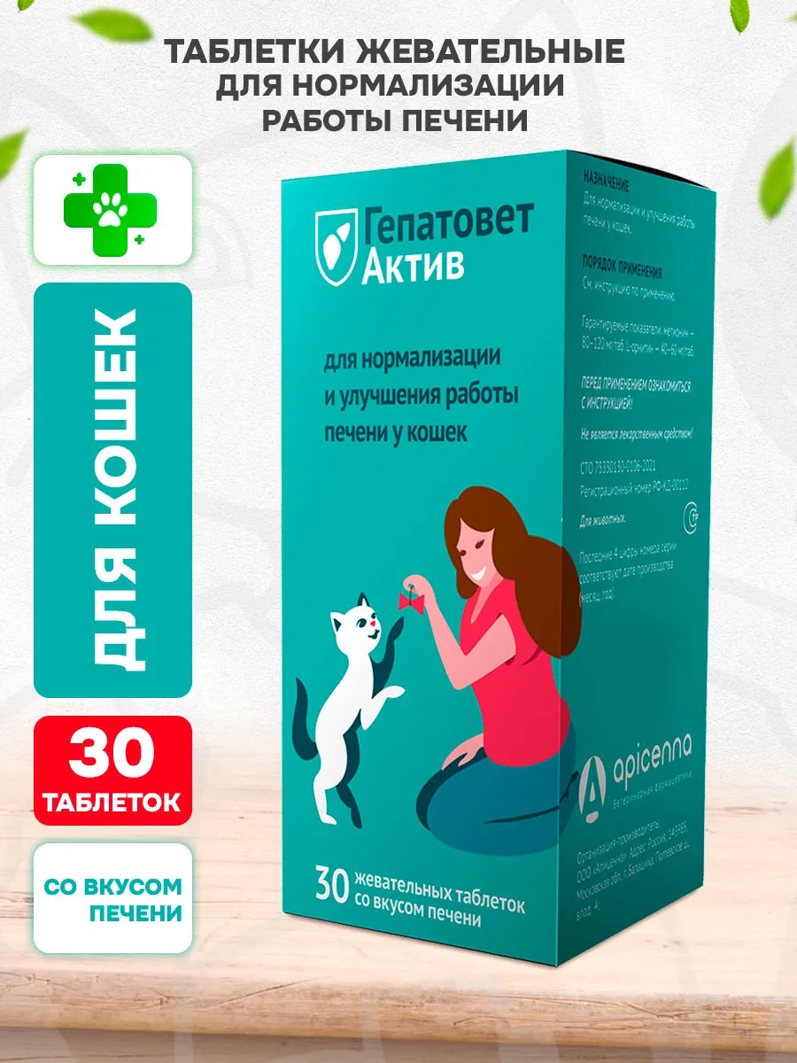 apicenna Гепатовет Актив таблетки жевательные для печени кошек 30 таб
