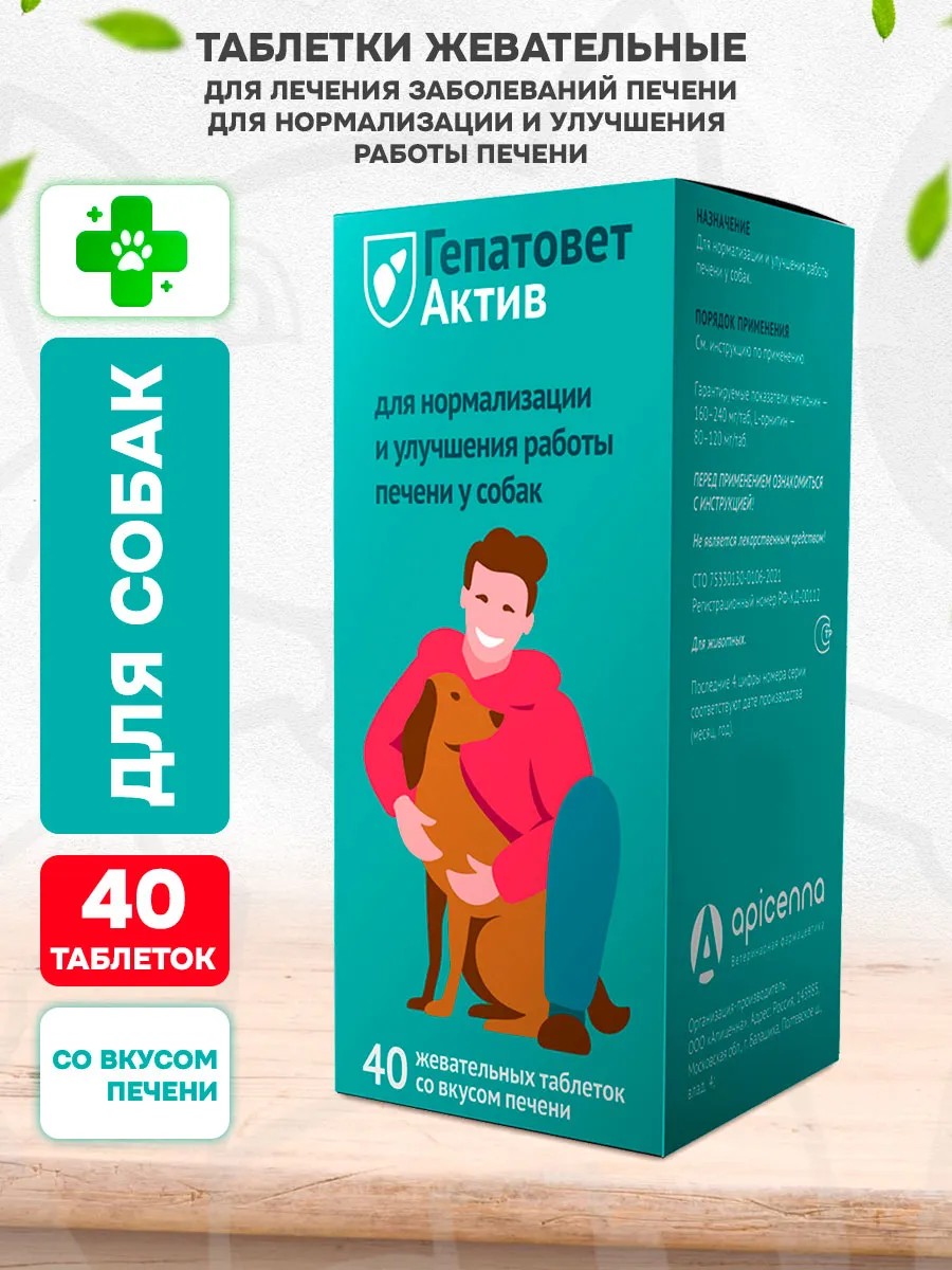 apicenna Гепатовет Актив таблетки жевательные для печени собак 40 таб