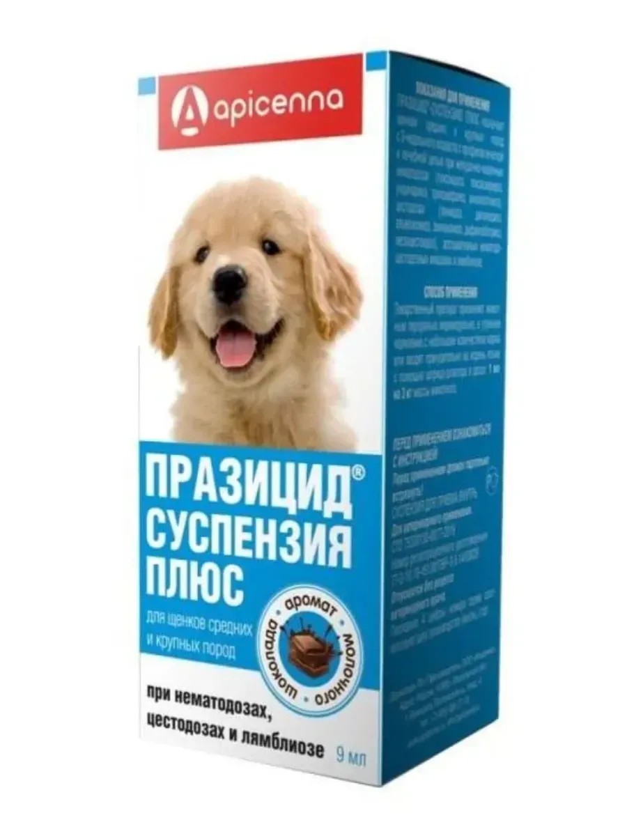 | Полное наименование товара | Празицид Плюс для щенков средних и крупных пород суспензия от глистов, 9 мл |
