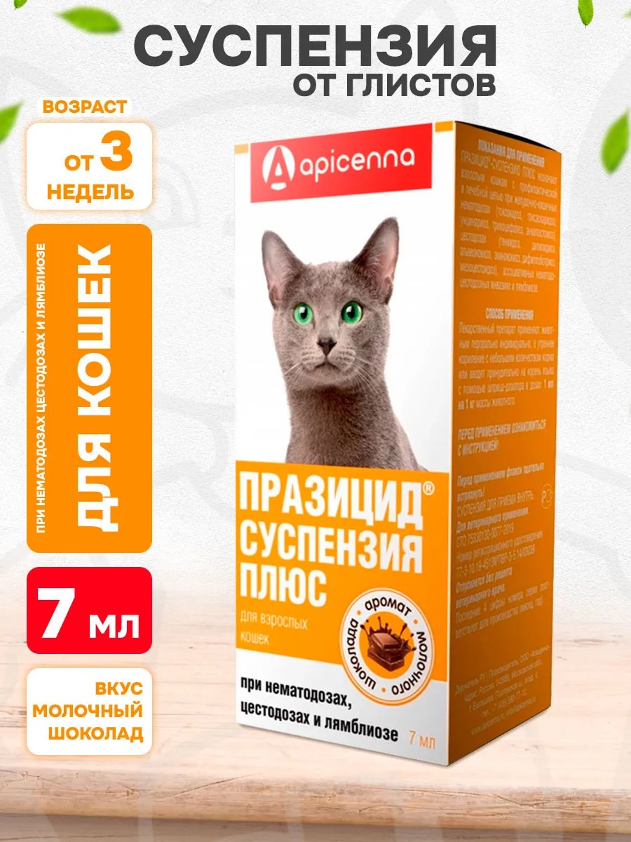 apicenna Празицид Плюс суспензия от глистов для кошек 7 мл