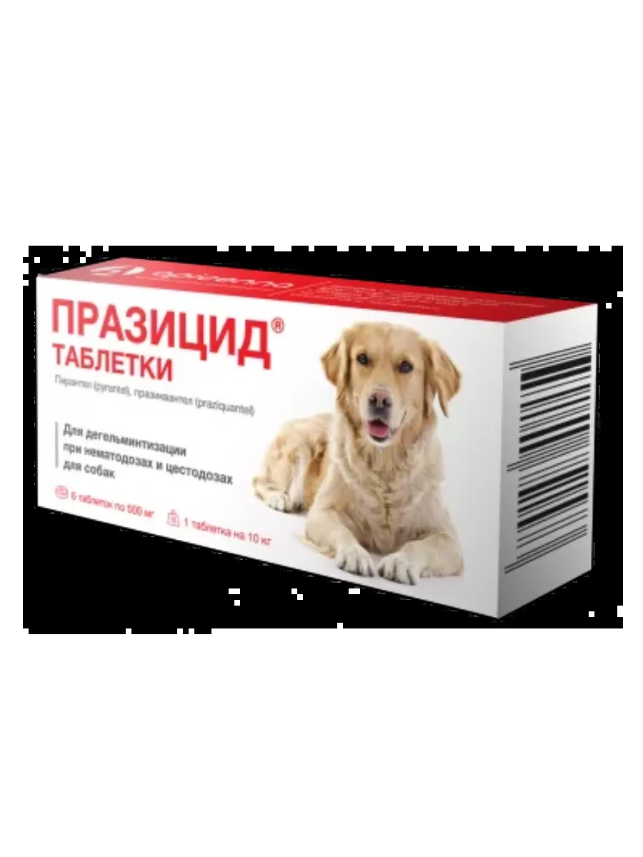 Празицид таблетки массой 500 мг для собак: пирантела памоата — 150 мг/табл., празиквантела — 45 мг/табл., вспомогательные вещества.